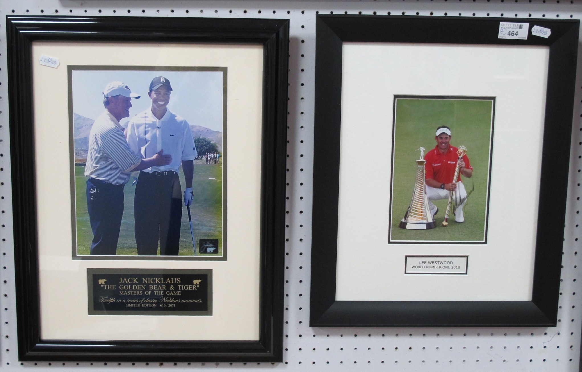Golf - Lee Westwood Autograph, ink signed (unverified) on an image of him with trophies. Jack Nicklaus/Tiger Woods Master of The Game limited edition print of 2071, framed 46 x 36cm (2).