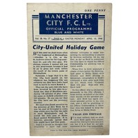 MANCHESTER UNITED AWAY VERSUS MANCHESTER CITY 1944/45 FOOTBALL PROGRAMME, 25/11/1944, WAR TIME 4-PAGE ISSUE. CREASING THROUGH CENTRE.E. MINOR FOLDS, GENERALLY SUPERB.