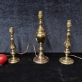 A trio of classic vintage solid brass table lamp bases. Three graduated sizes.