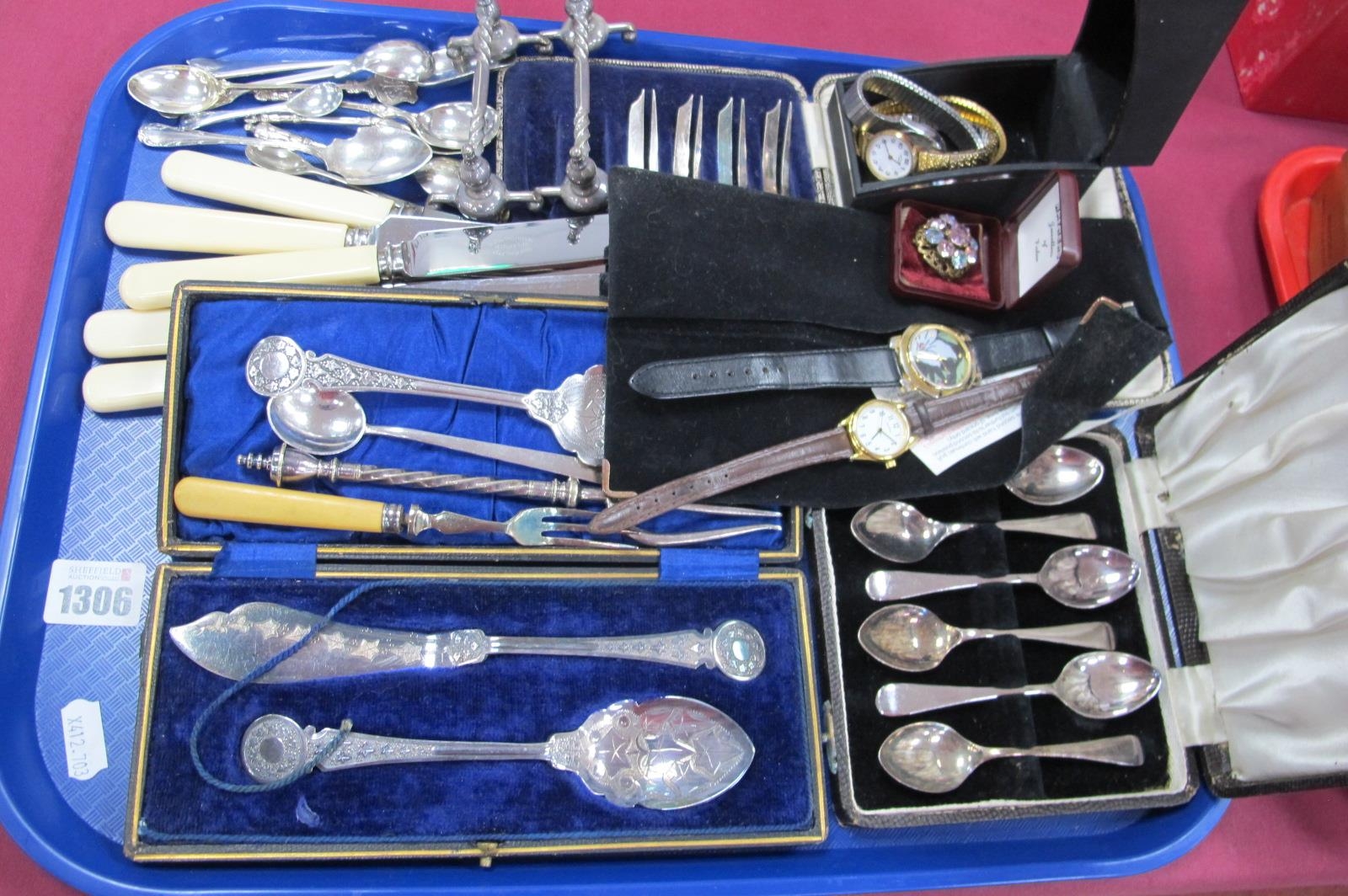 Knife Rests, plated cutlery, watches.