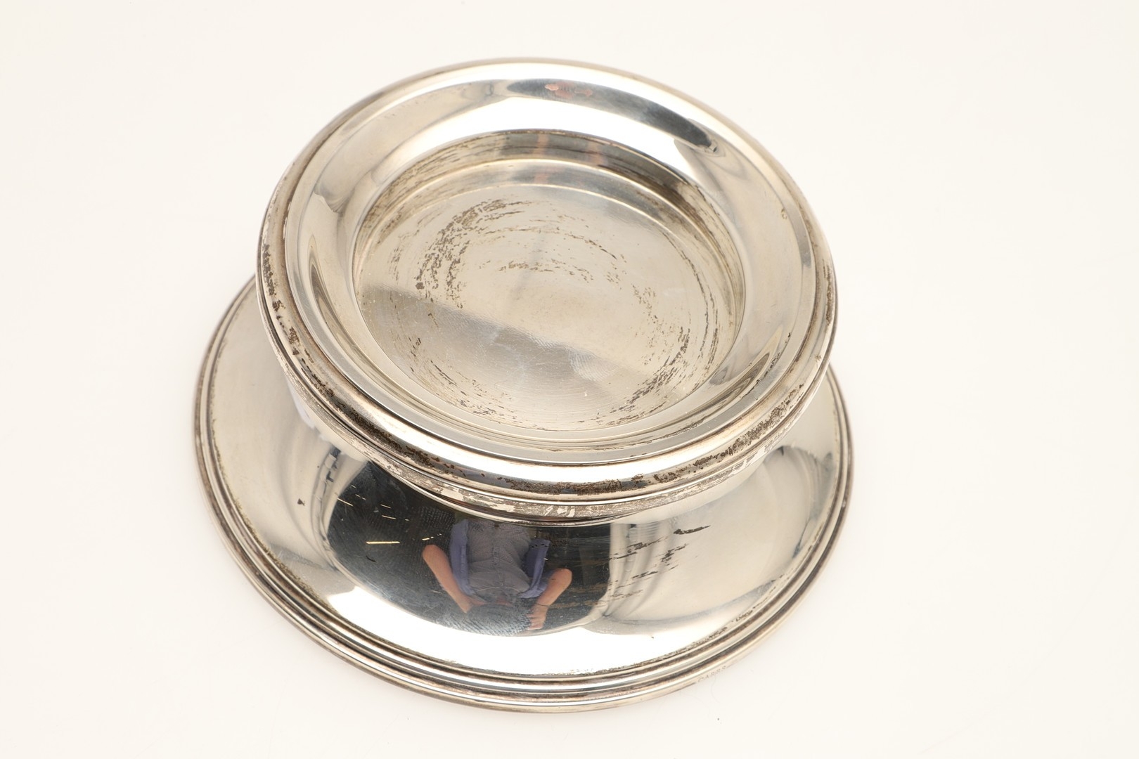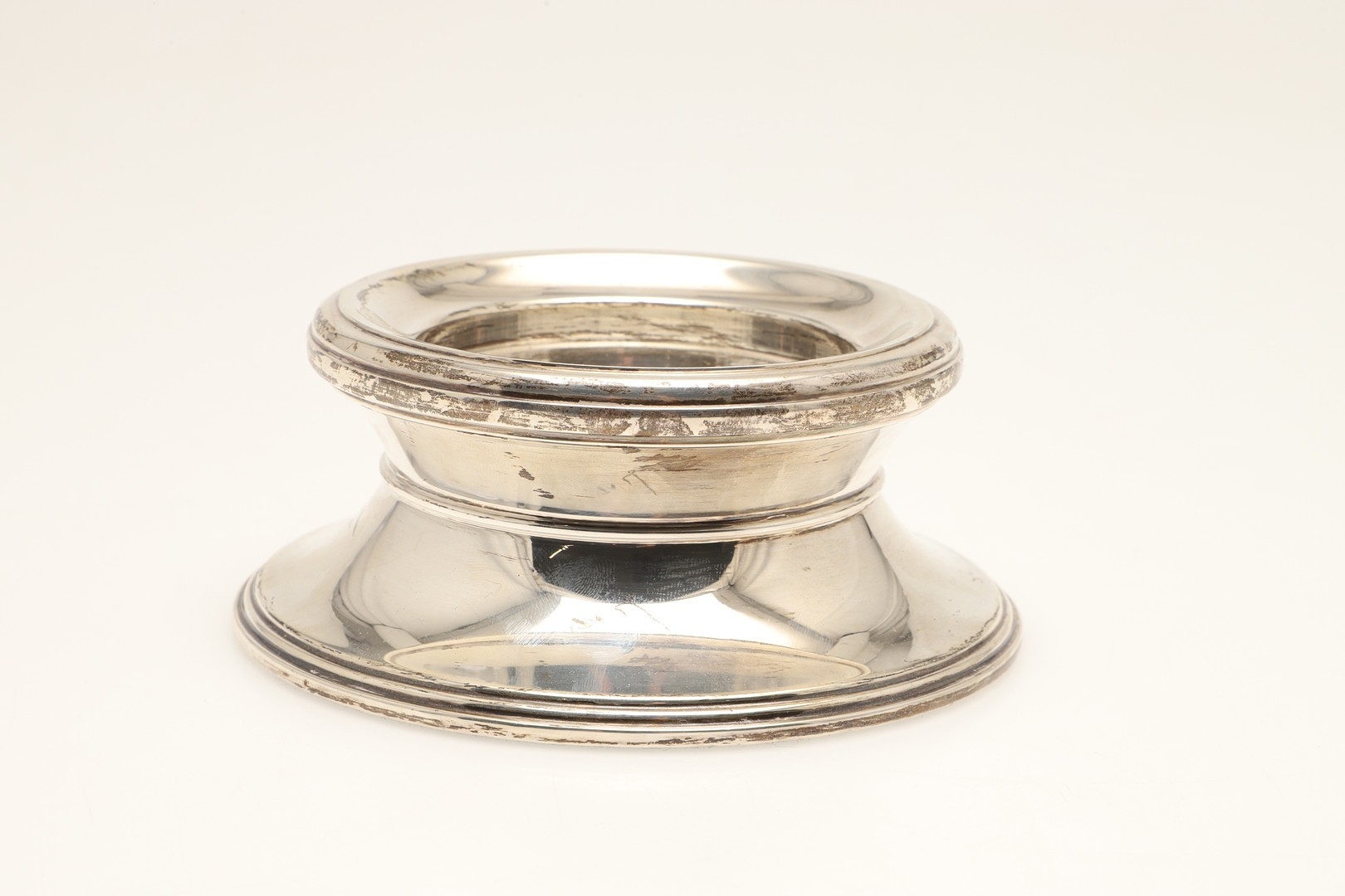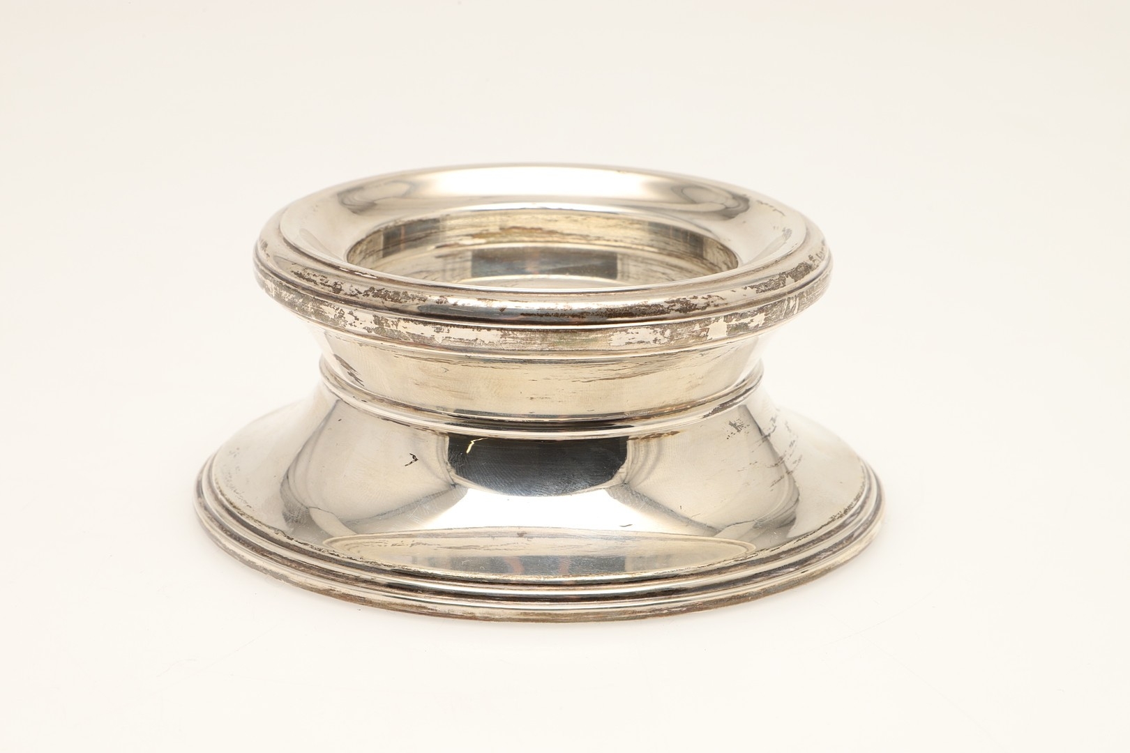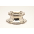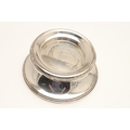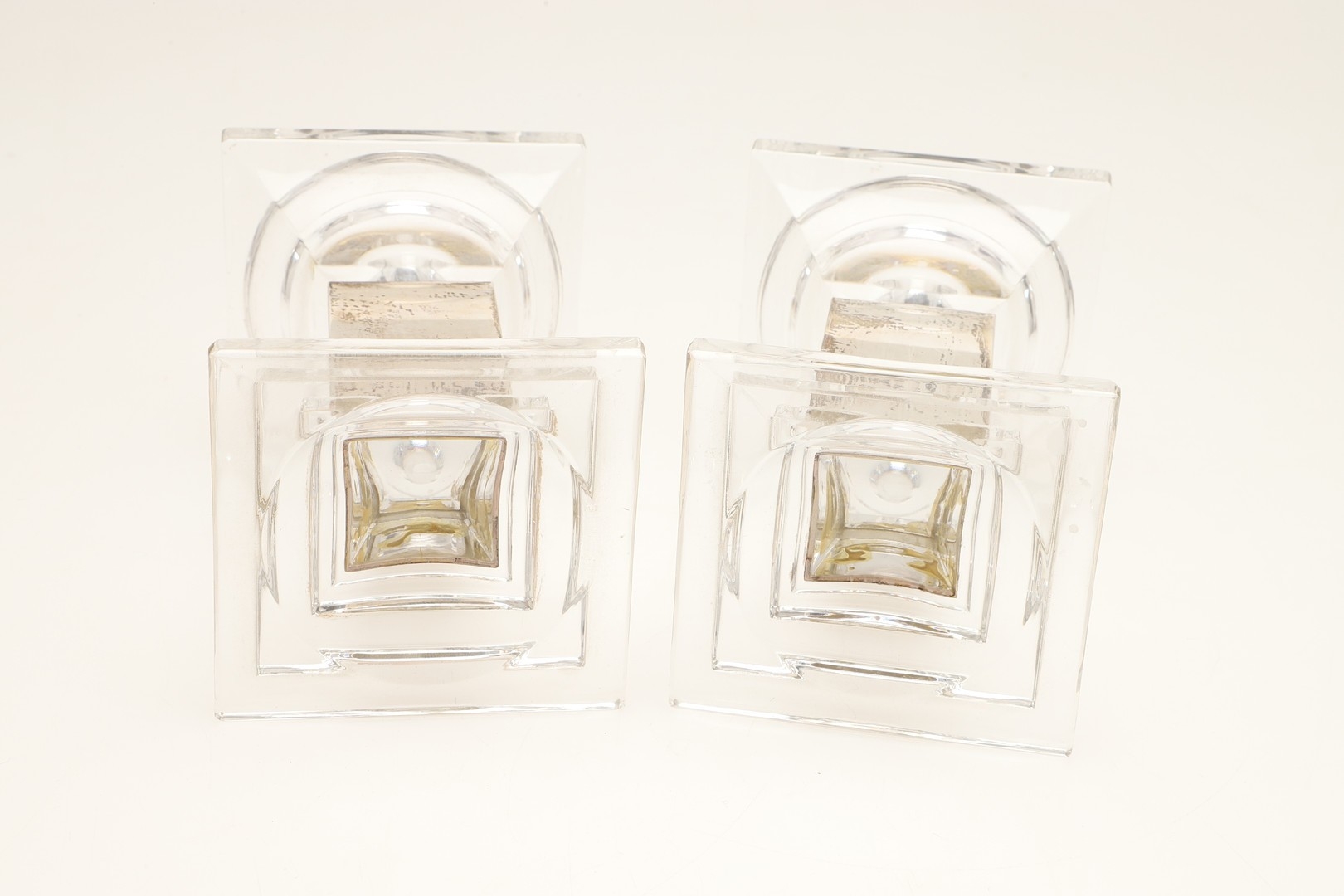 A PAIR OF CARR'S OF SHEFFIELD GLASS AND SILVER FACED CANDLESTICKS AND A SILVER CANDLE STAND. The pair of square stepped pedestal form, Height 14cm x Diameter 9.5cm, the other filled silver candle holder of rounded form (Height 5.5cm x Diameter 13cm). All hallmarked Carr's of Sheffield Ltd, Sheffield, 2005. (3).