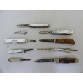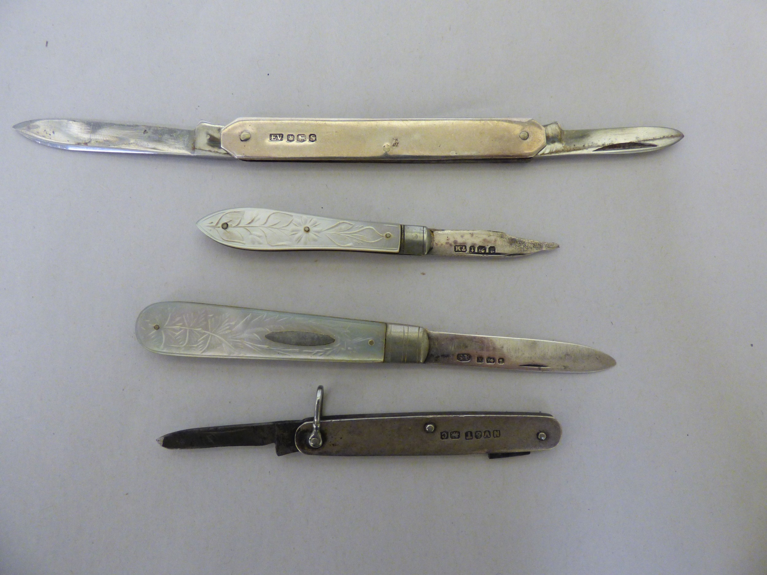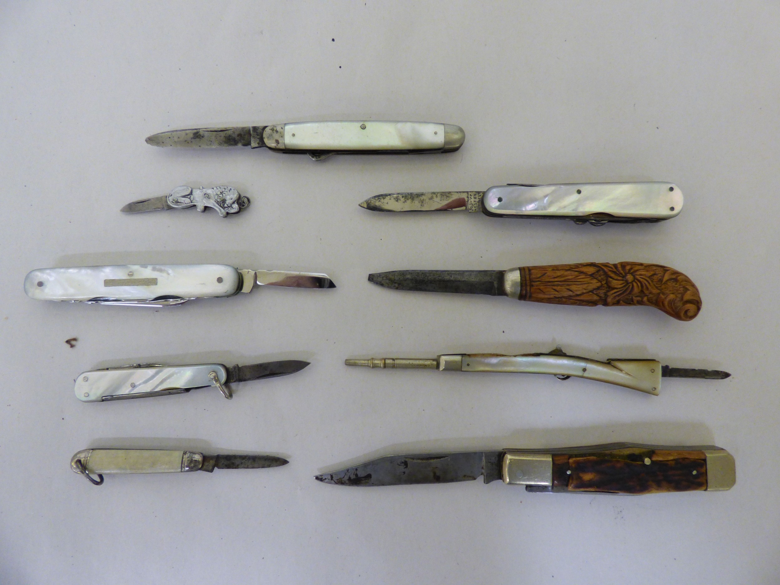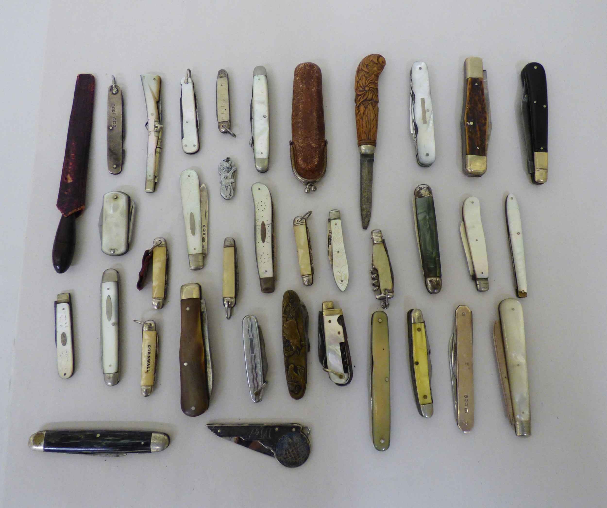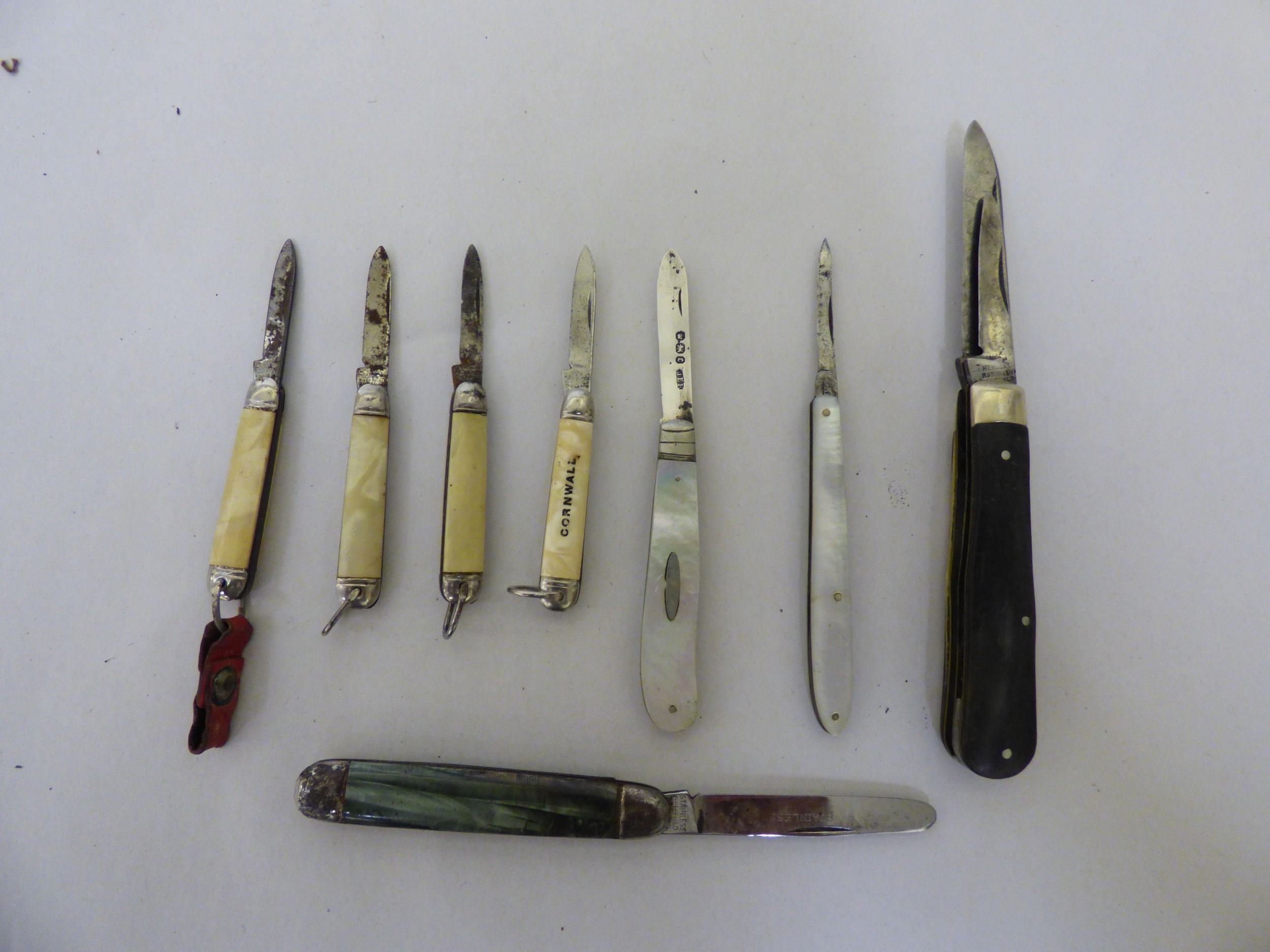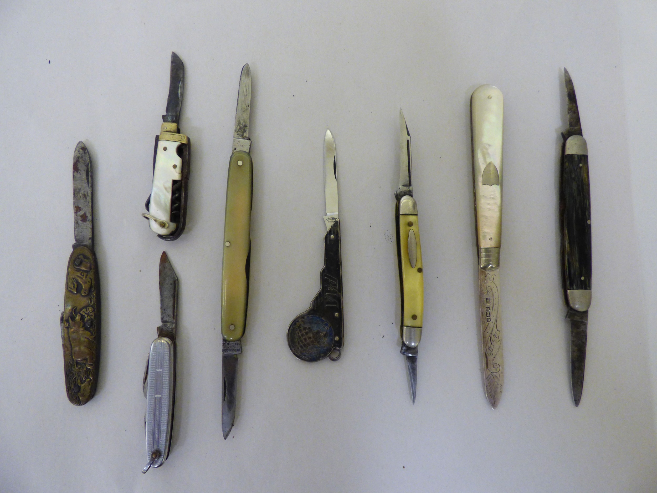 Pocket and penknives: to include a silver cased example with two blades Sheffield marks