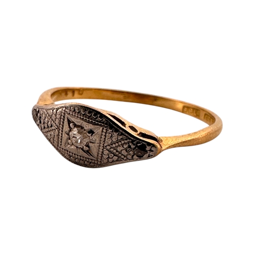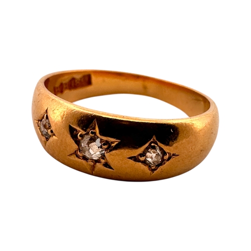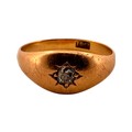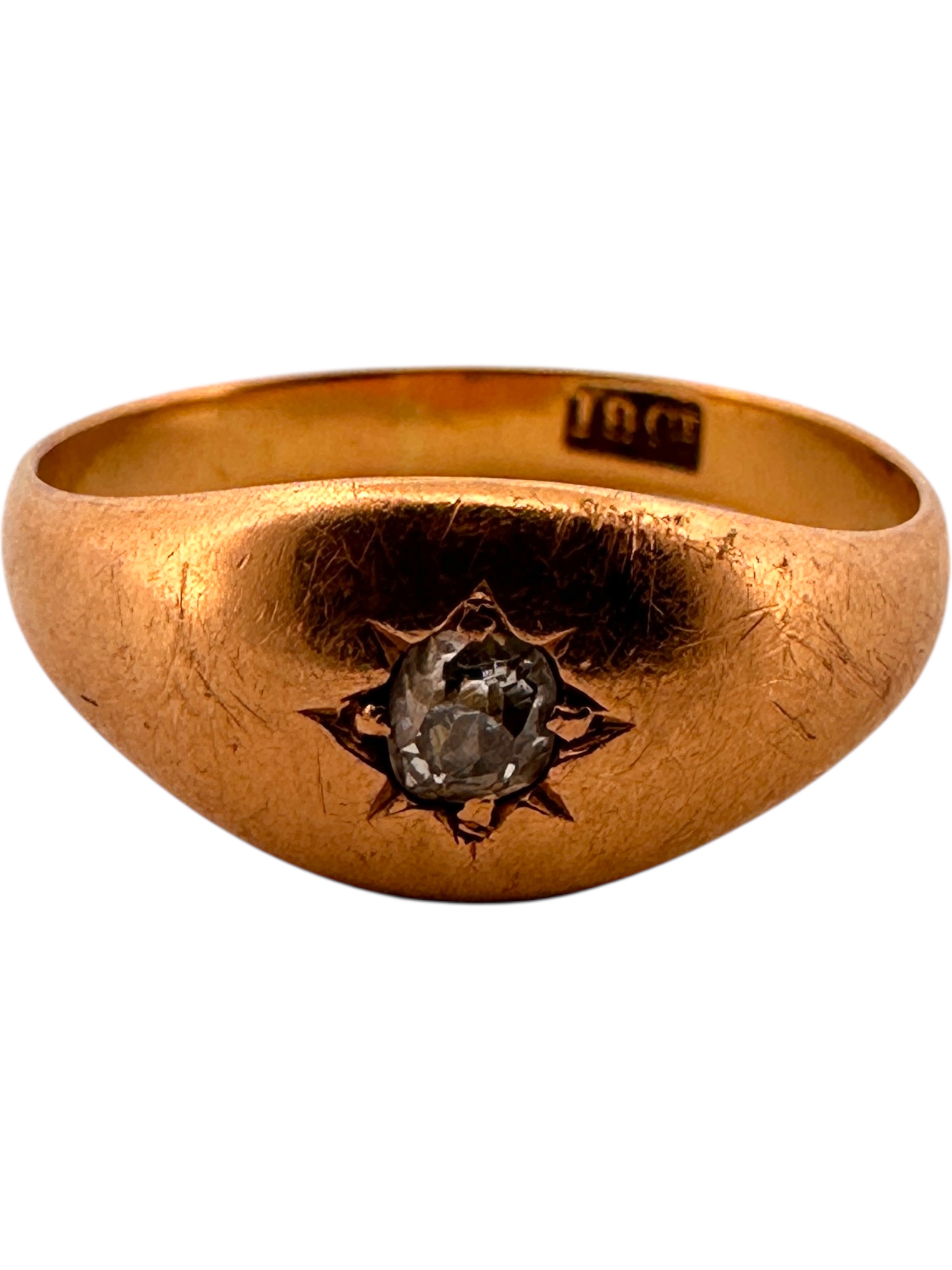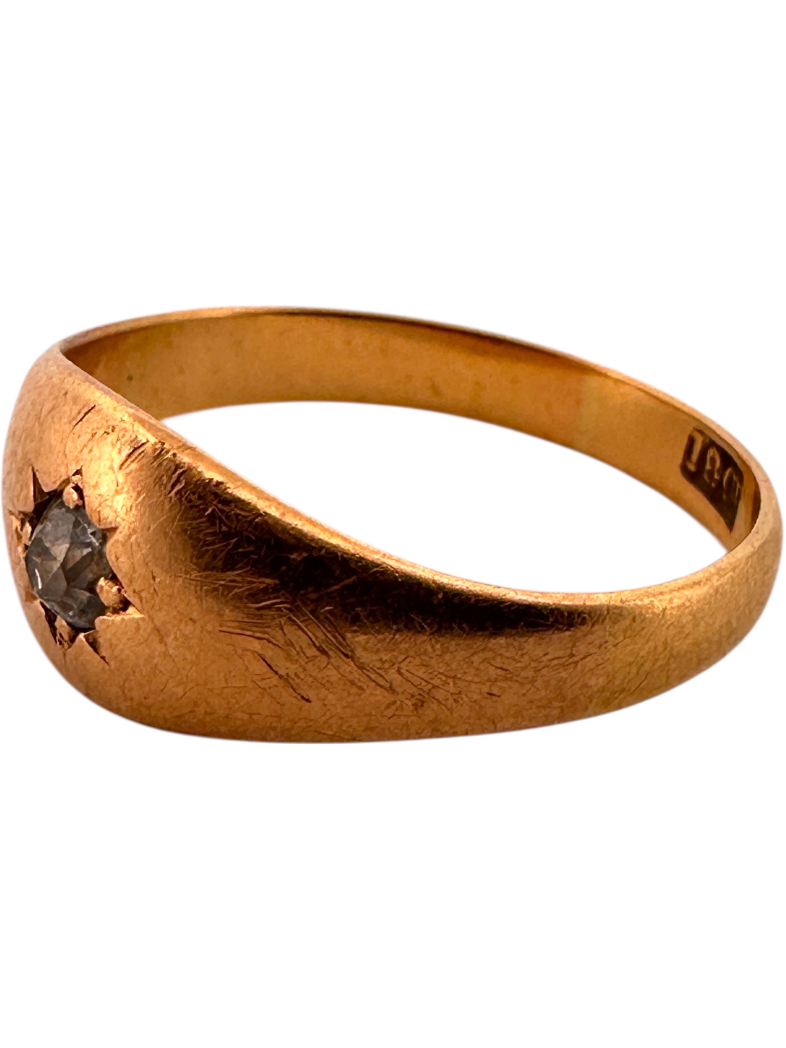 Eighteen Carat Gold Gypsy Style Ring set with Single Diamond. Size M. 3g