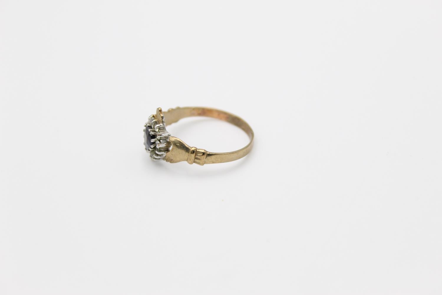 A 9ct gold sapphire and gemstone halo claddagh ring, size U - approx. gross weight 2.9 grams