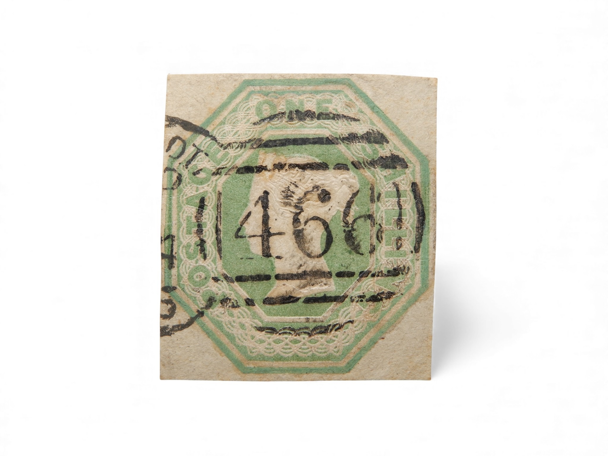 Great Britain 1847 1/- Green a lovely 4 margin copy with part Liverpool Spoon Cancel Cat £1000, as per photo