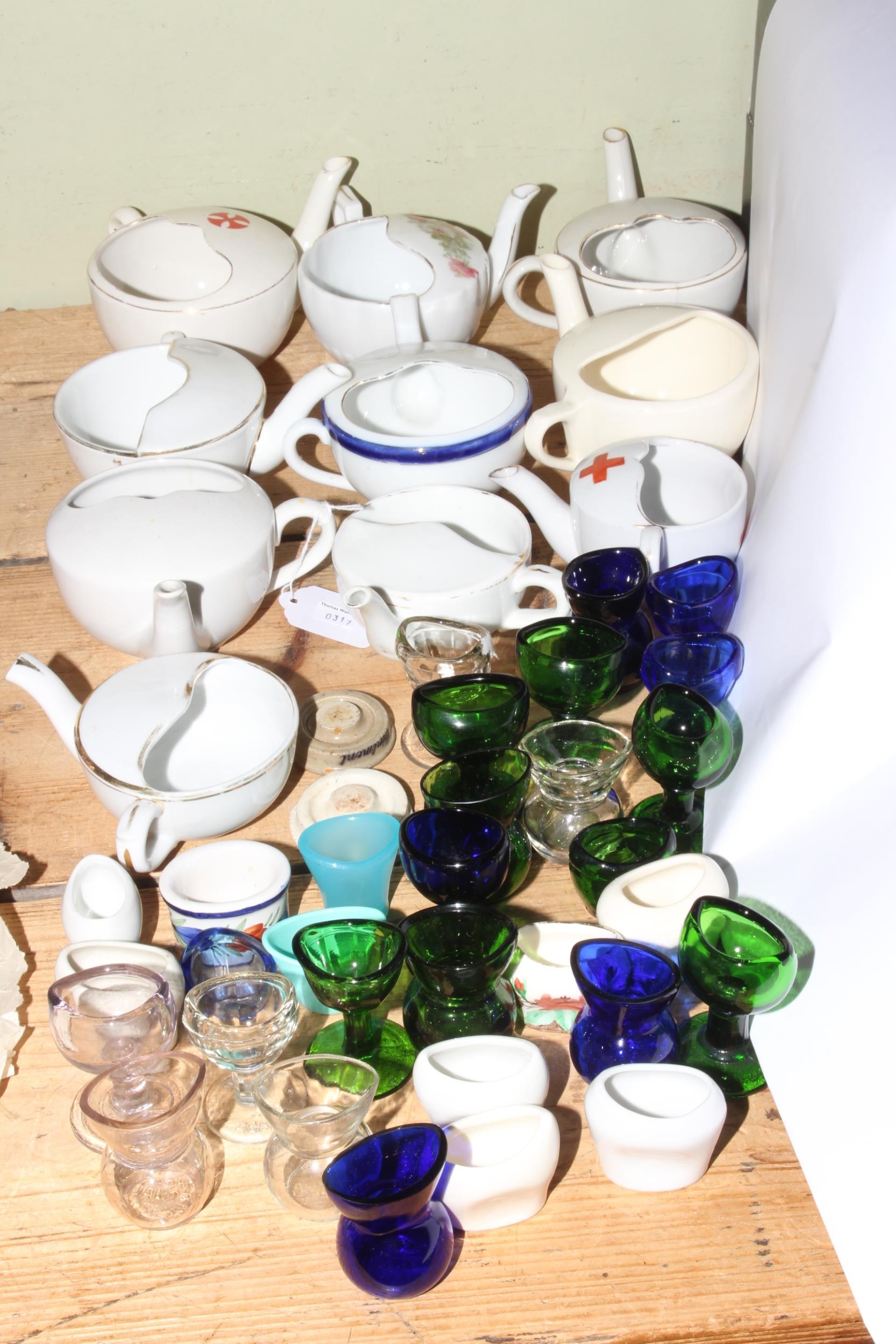 Ten vintage feeding cups and over thirty eye baths.