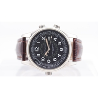 Dial features: Polished baton hour markers, black subsidiary dials, date aperture at 4:30