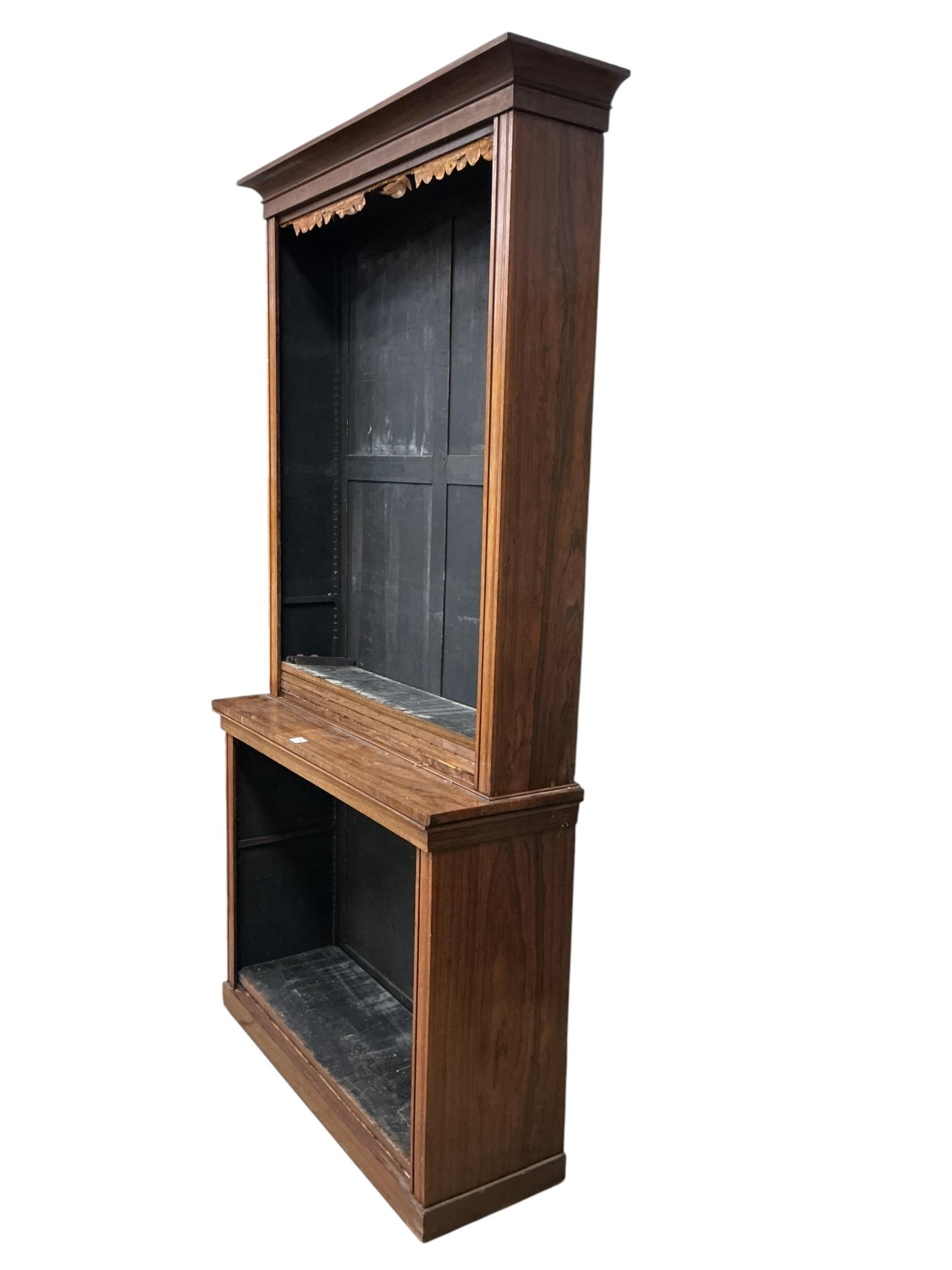 A Victorian rosewood open bookcase, in two sections, width 127cm, depth 40cm, height 234cm