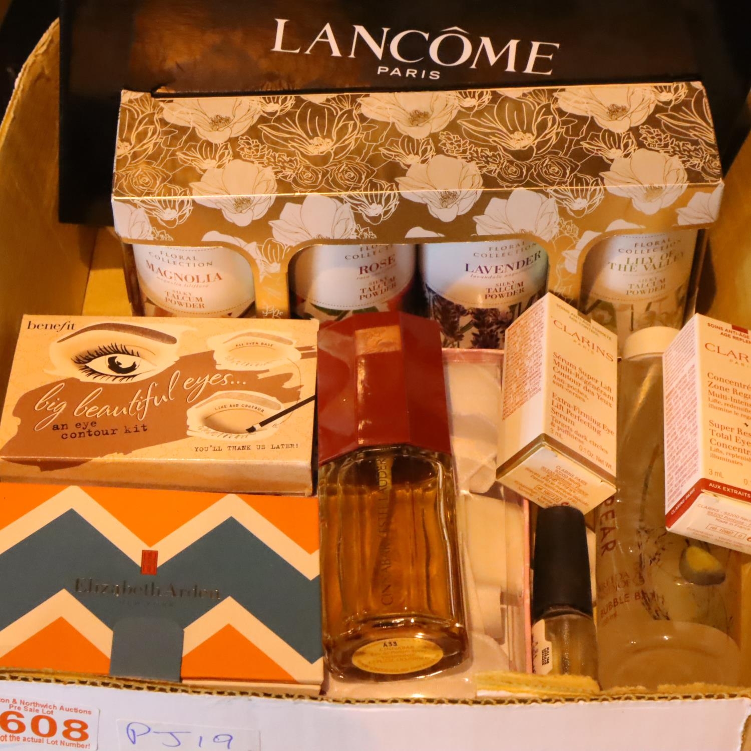 Selection of ladies make up and perfume to include Lancome and Estee Lauder examples. Not available for in-house P&P, contact Paul O'Hea at Mailboxes on 01925 659133