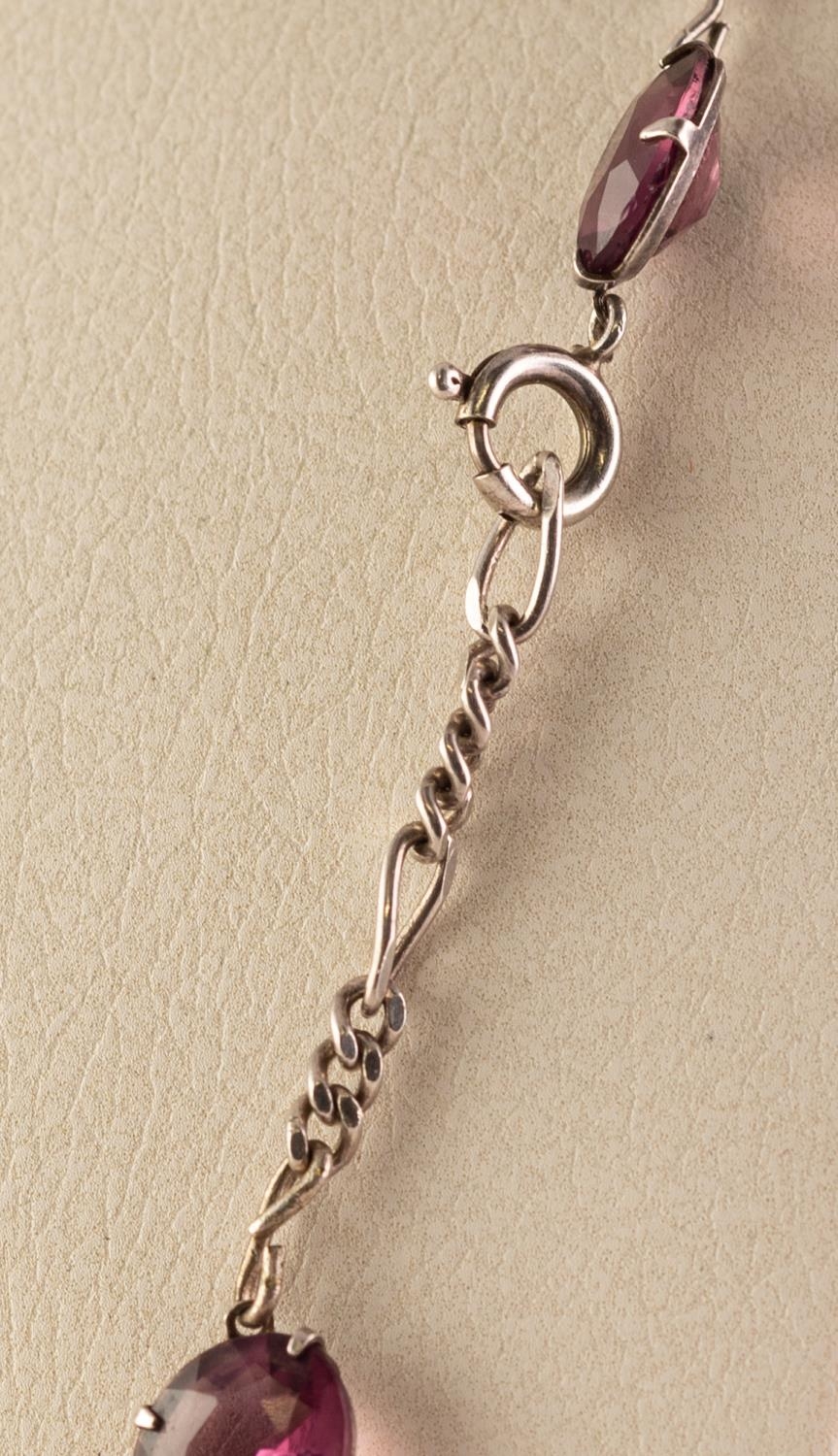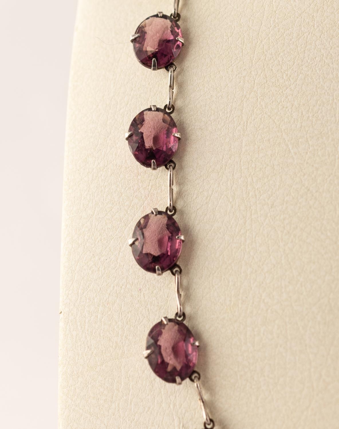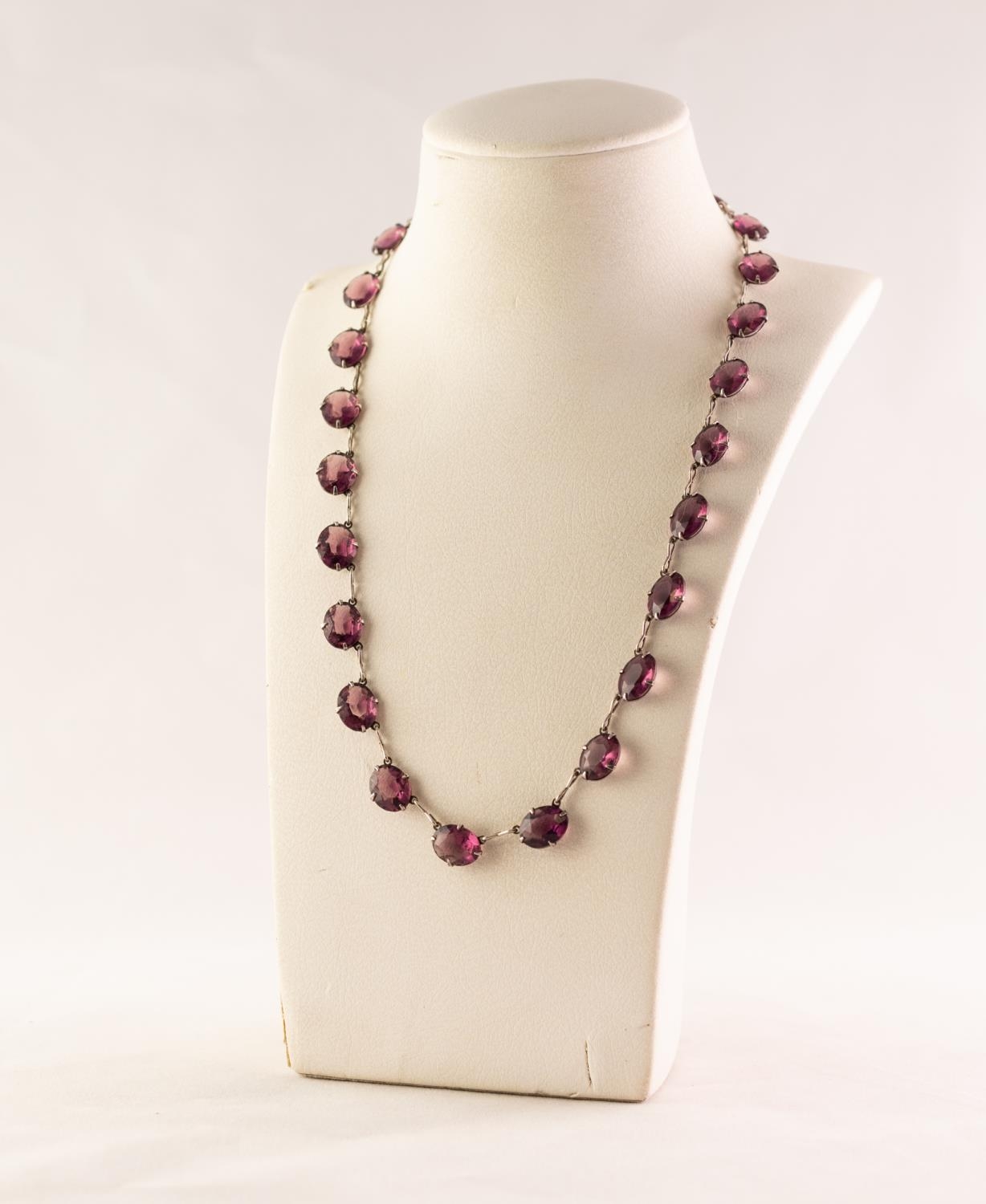 SILVER COLOURED METAL 23 STONE AMETHYST SET NECKLACE