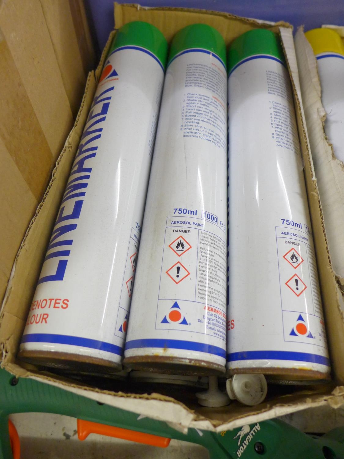 6 Large cans of green road paint - unused