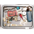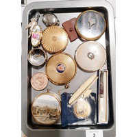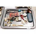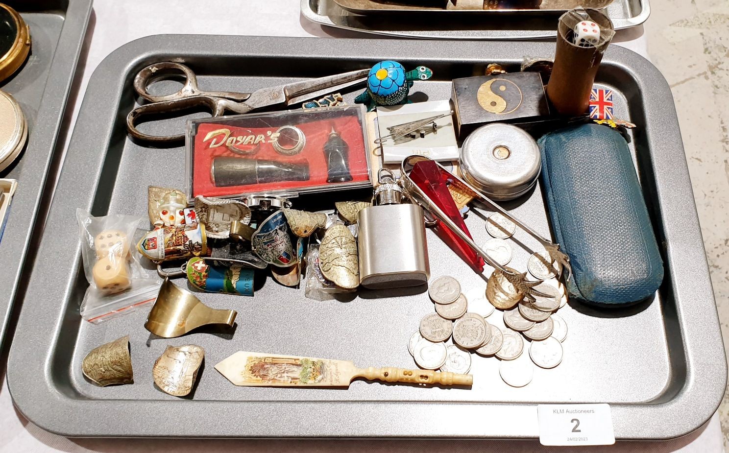 A tray of collectables including a bone Stanhope. UK shipping £14.