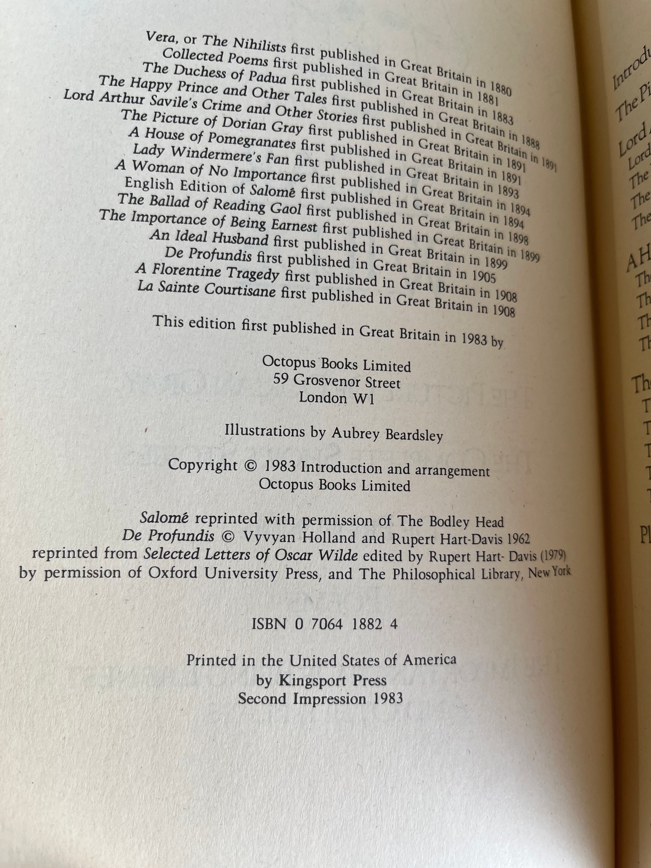 Oscar Wilde compilation book by Octopus. First edition second impression 1983. ISBN 0 7064 1882 4
