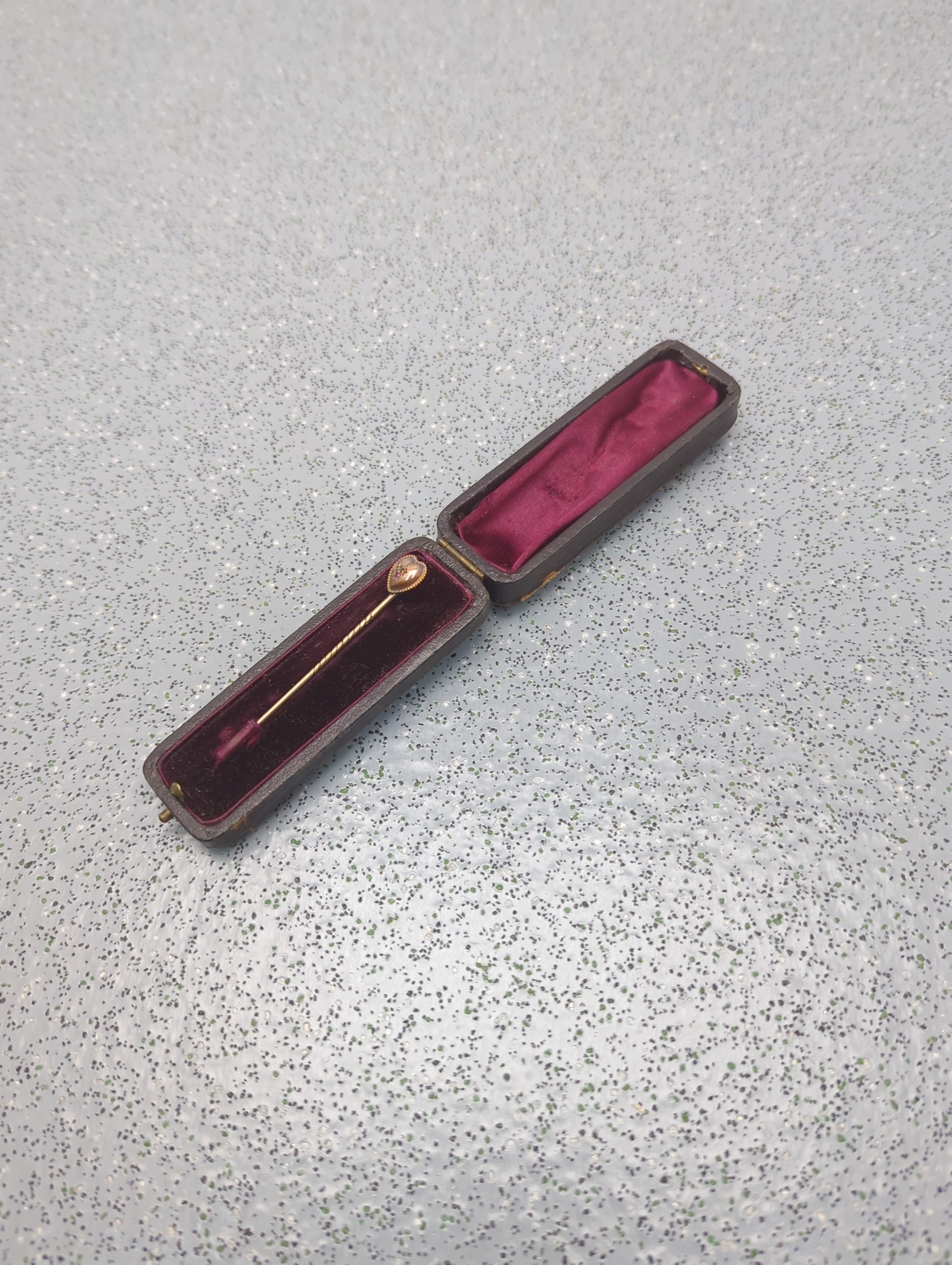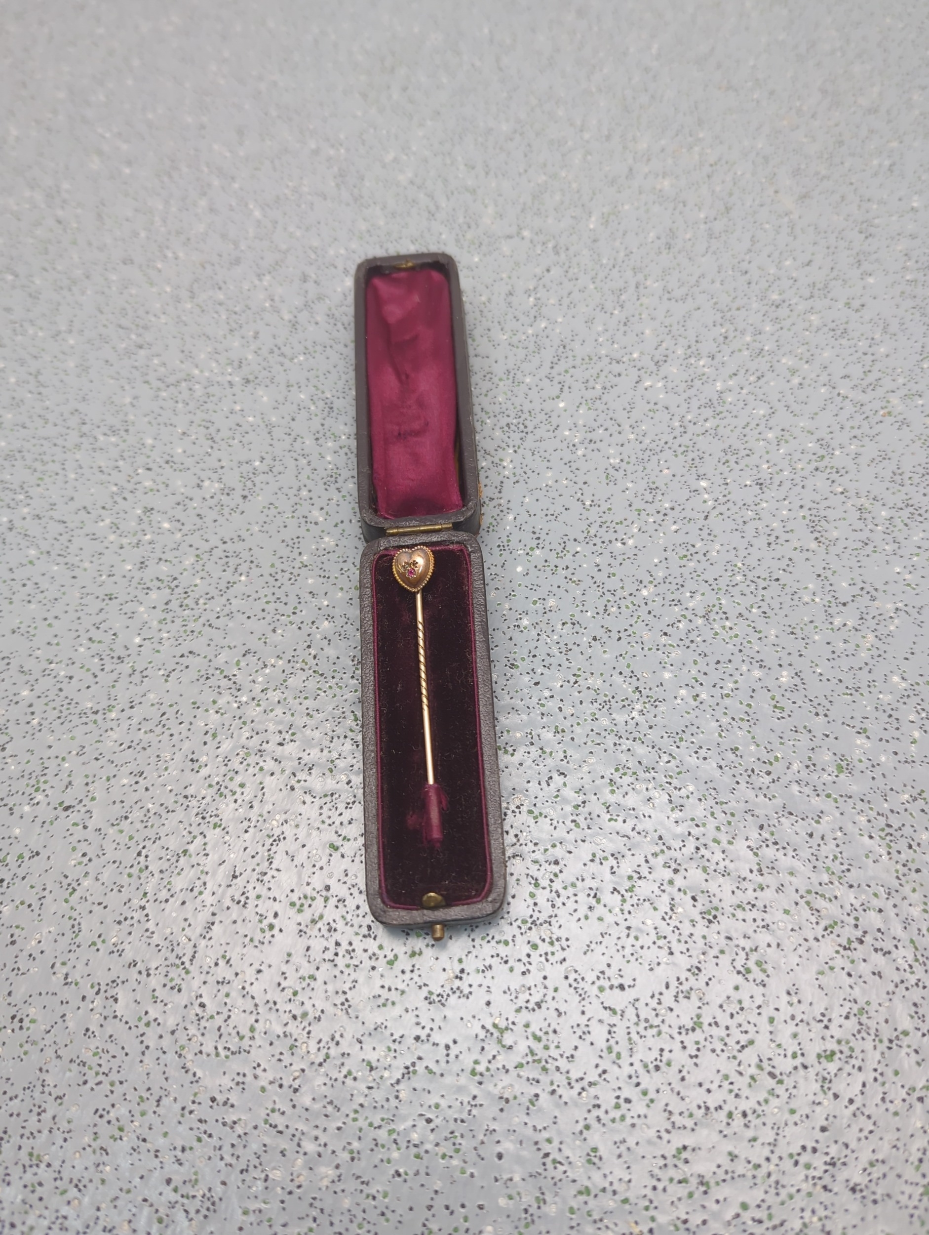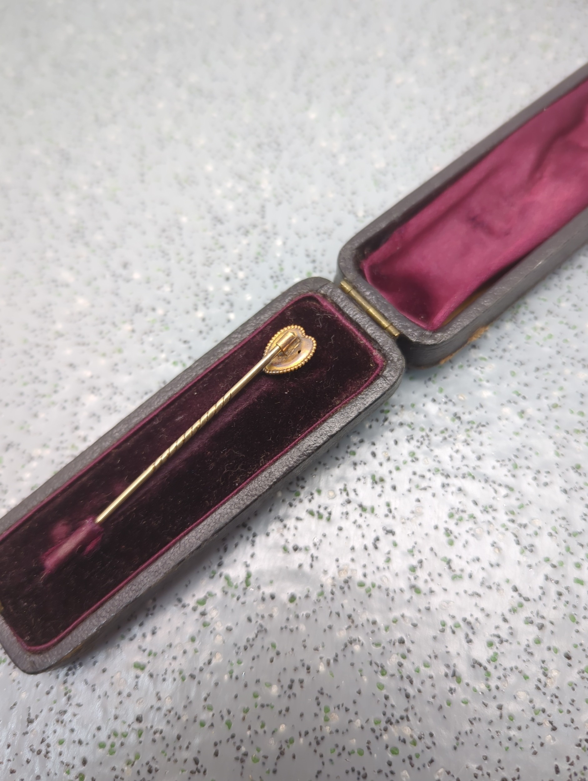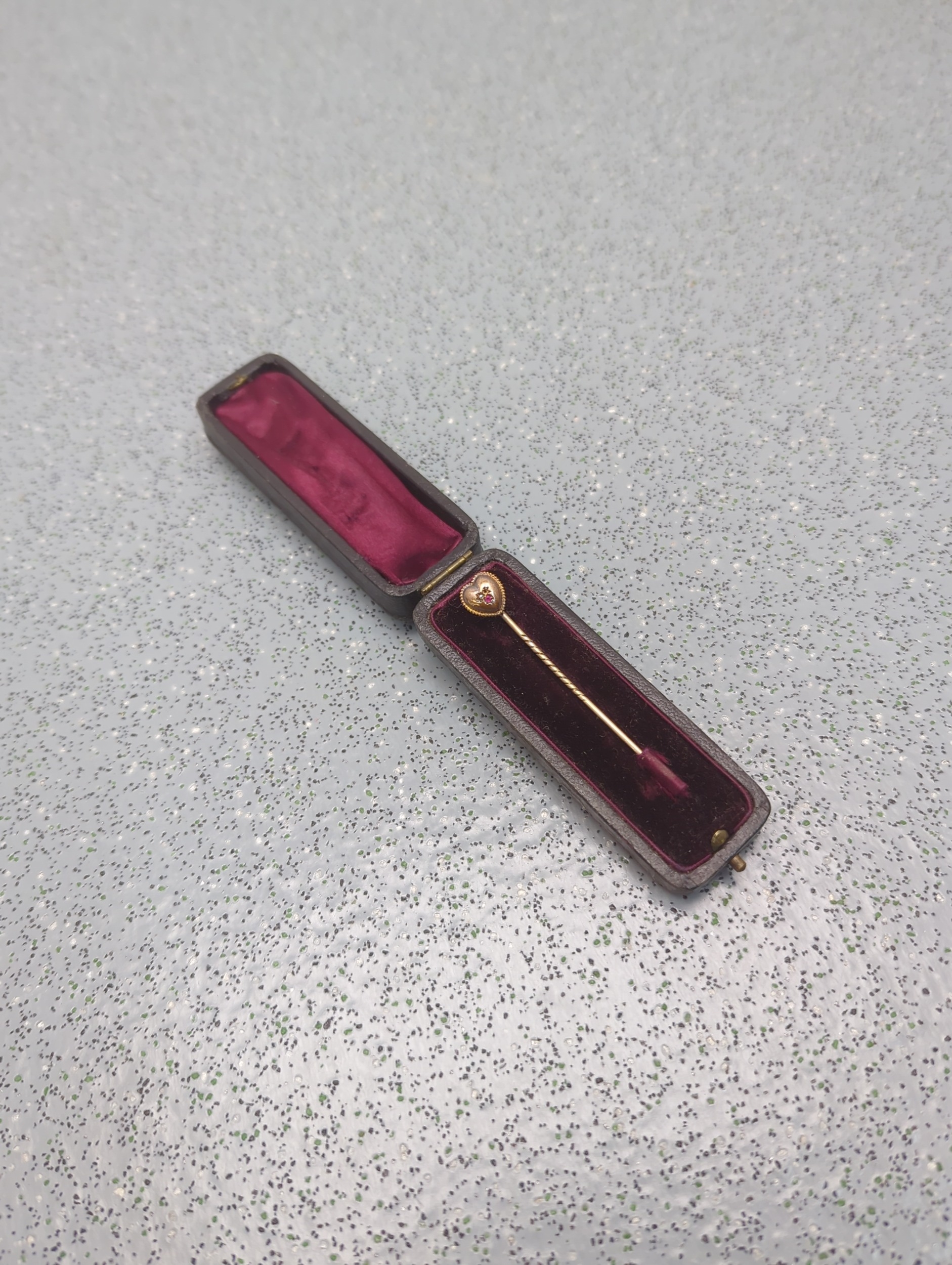 Heart-Shaped Stick Pin with Case - Marked 18 Karat