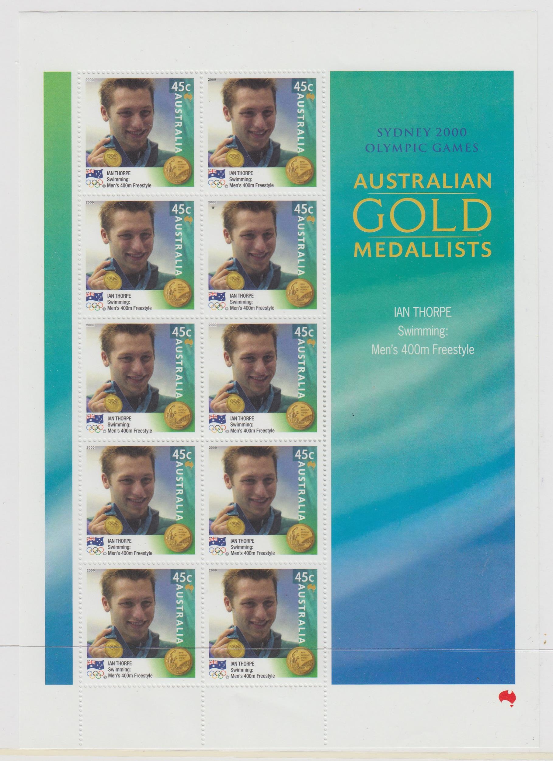 Australian Gold Medallists 2000 Olympics mint sheetlet collection in special album