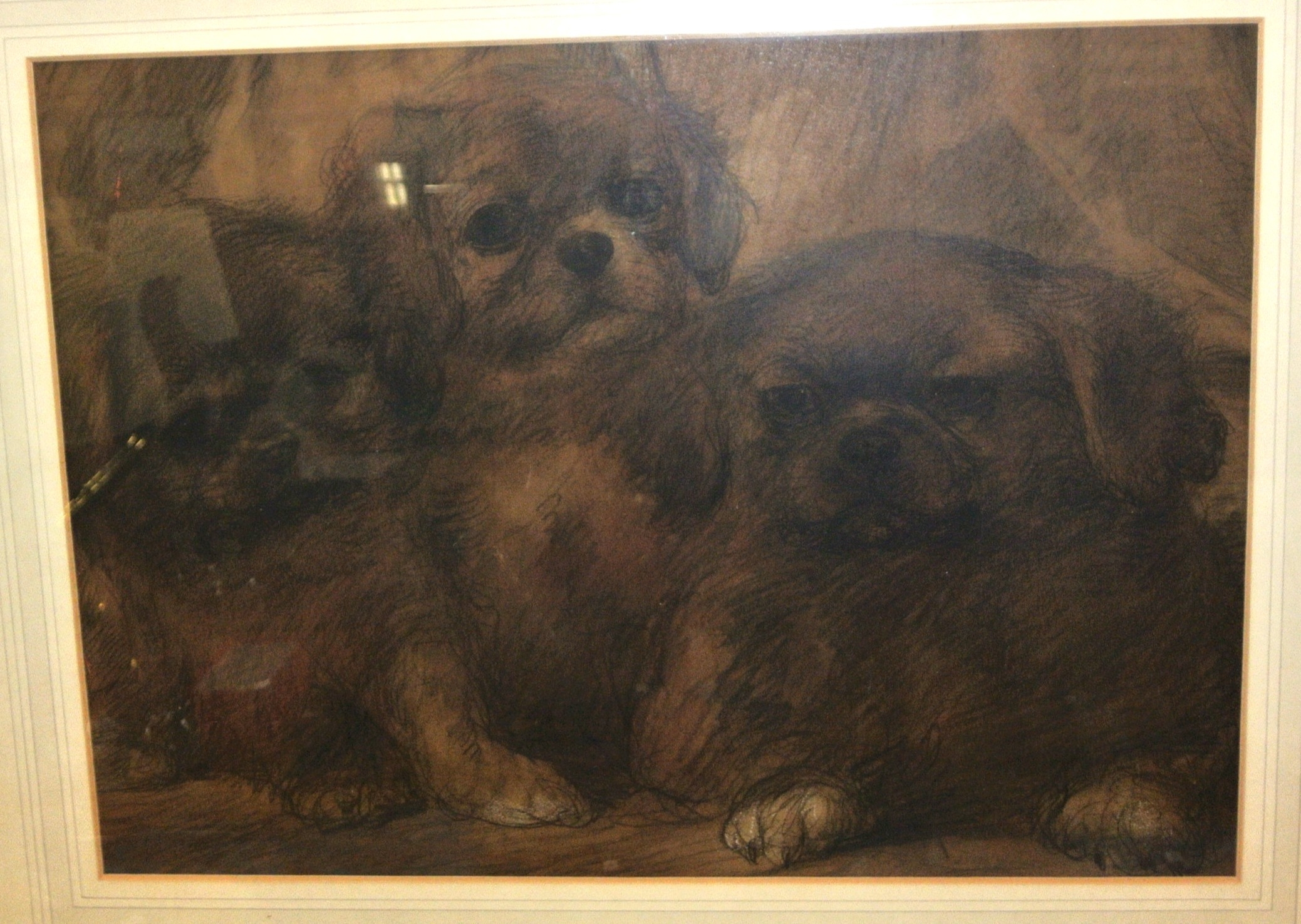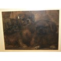 Irish school 'Cute Puppies' charcoal and wash with chalk highlights 27x38cm
