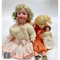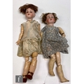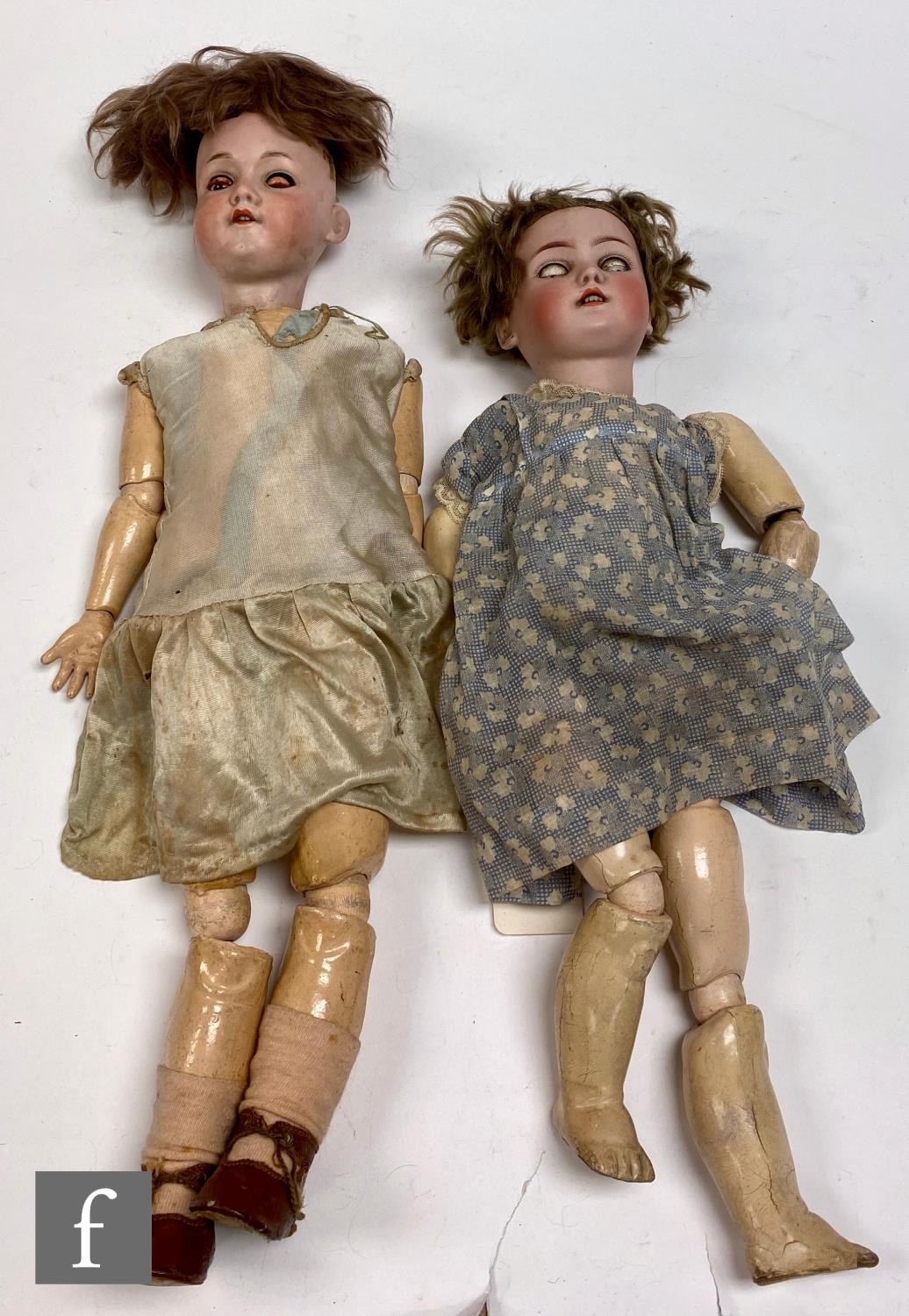 A 1920s German Armand Marseille bisque socket head doll, head mould 390, with sleeping brown eyes, open mouth with teeth, painted features, with a composition and wood ball jointed body, head impressed Armand Marseille Germany 390 A7M, and a Simon and Halbig bisque socket head child doll, with sleeping brown eyes, open mouth with teeth, pierced ears and painted features, with composition and wood ball jointed body, head impressed Simon & Halbig S&H 8 1/2, height 50cm, with repainted heads. S/D. (2)
