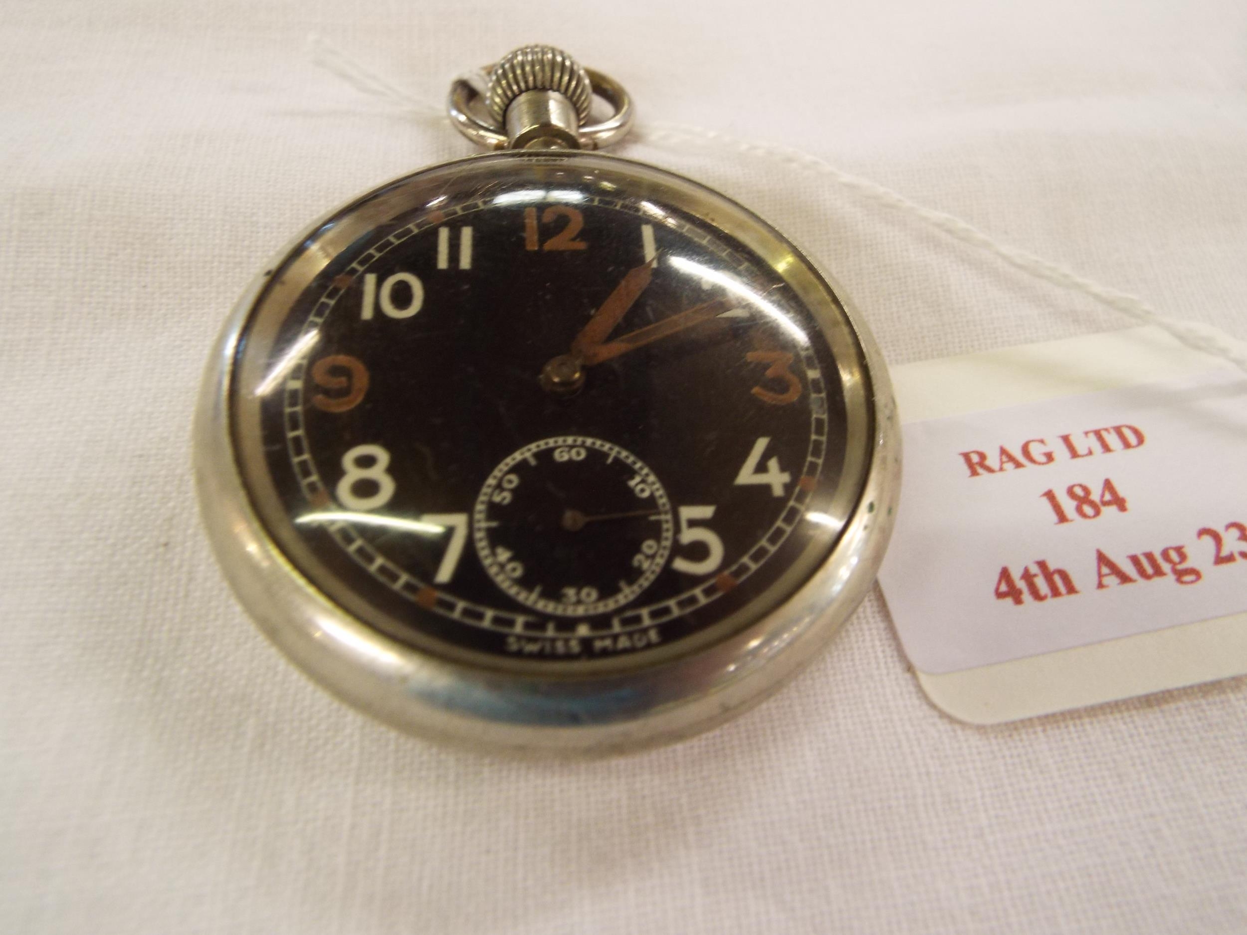 An Arthur Schnegg British Army GSTP pocket watch in working order but needs attention