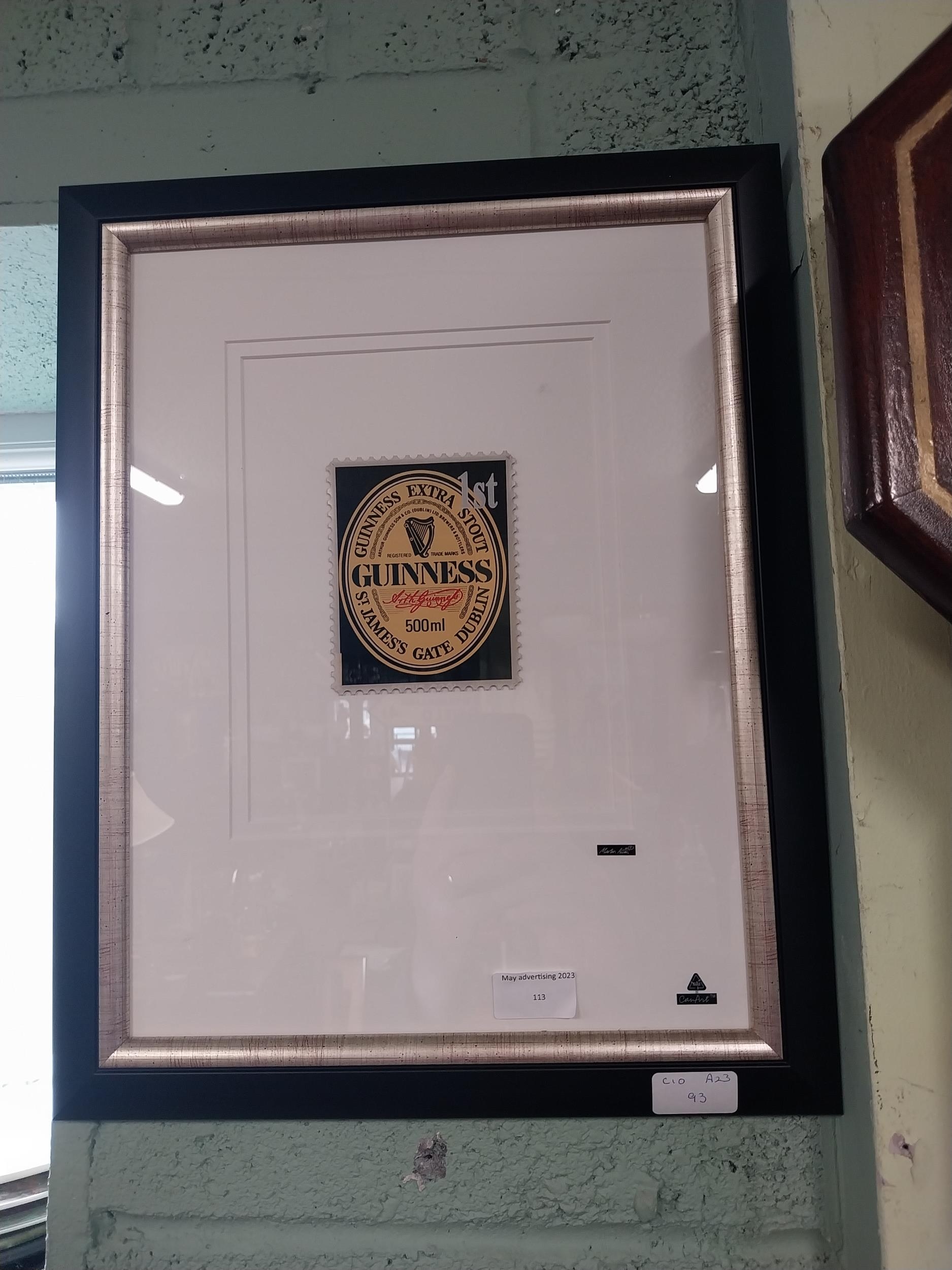 Guinness Framed Stamp By Martin Allen. {46 cm H x 37 cm W}.