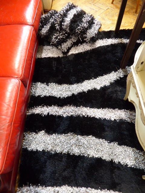 Black and silver 'Vibe' rug - 170 x 120cm & pair cushions