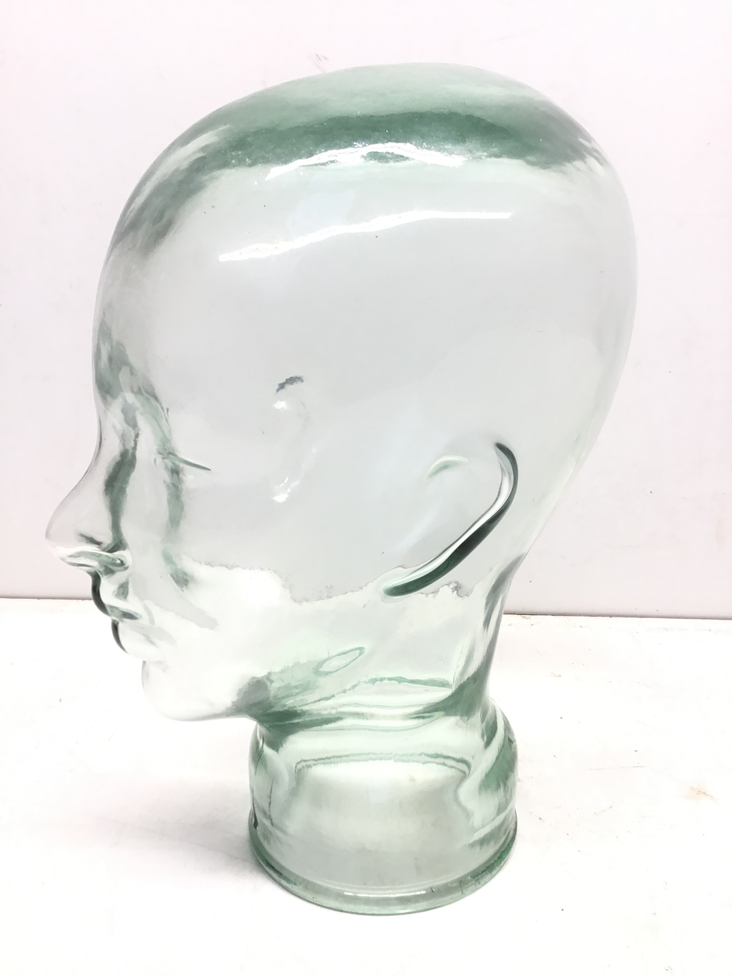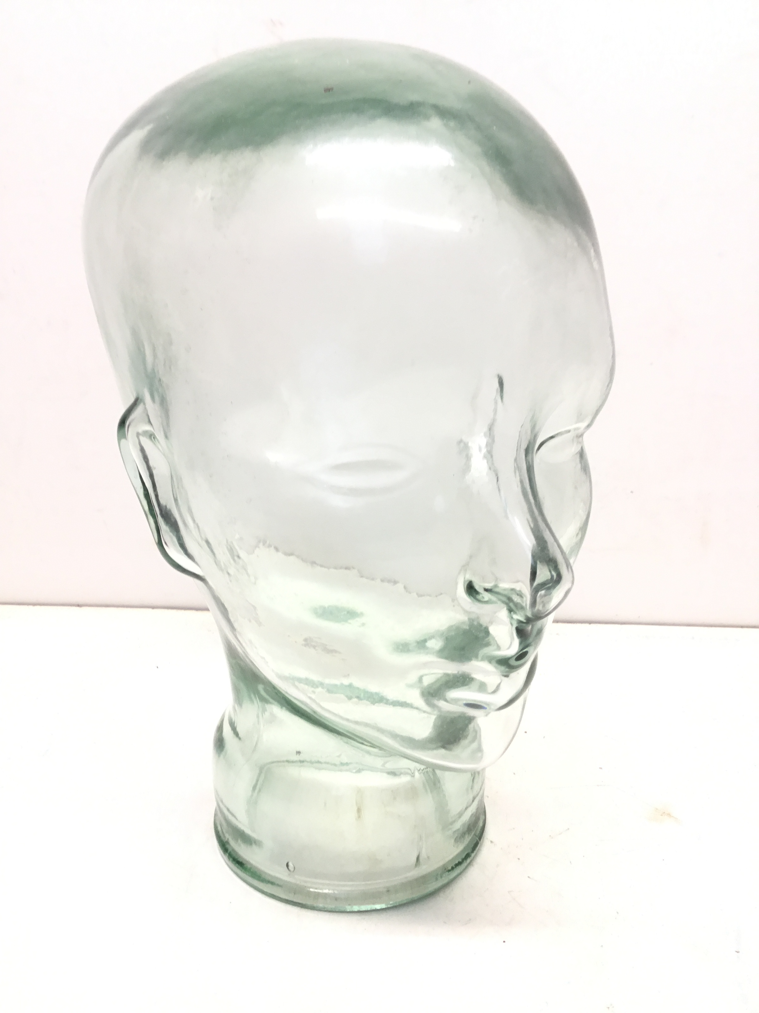 Vintage Glass Mannequin Head in Aqua Blue-Green 29cm