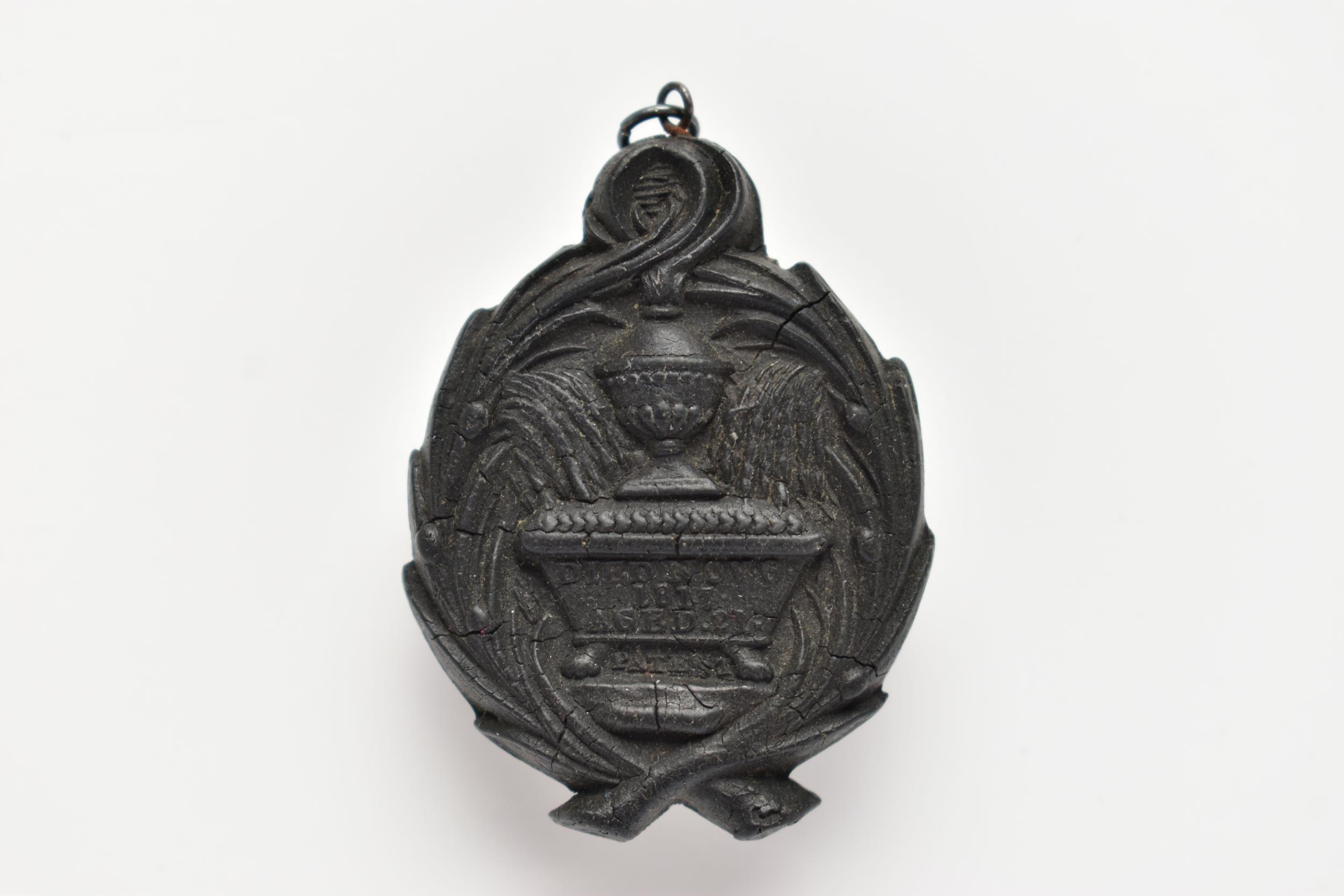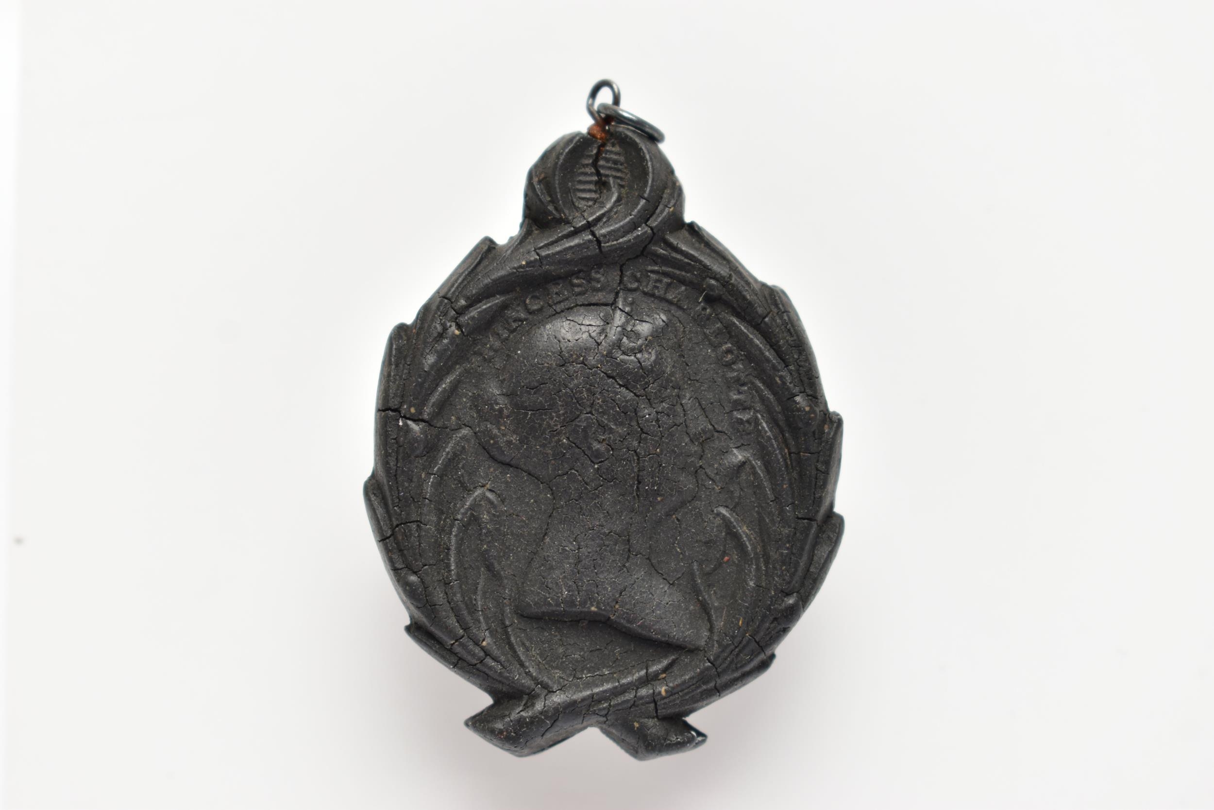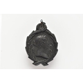 AN EARLY 19TH CENTURY MOURNING PENDANT, oval form pendant depicting a portrait of princess Charlotte to one side with the reverse reading 'Died Nov 6 1817 aged 21 patent', assessed as jet, approximate dimensions length 39mm x width 29mm, fitted with a white metal bail, approximate gross weight 6.4 grams (condition report: heavy surface crazing, dull appearance, would benefit from restoration)