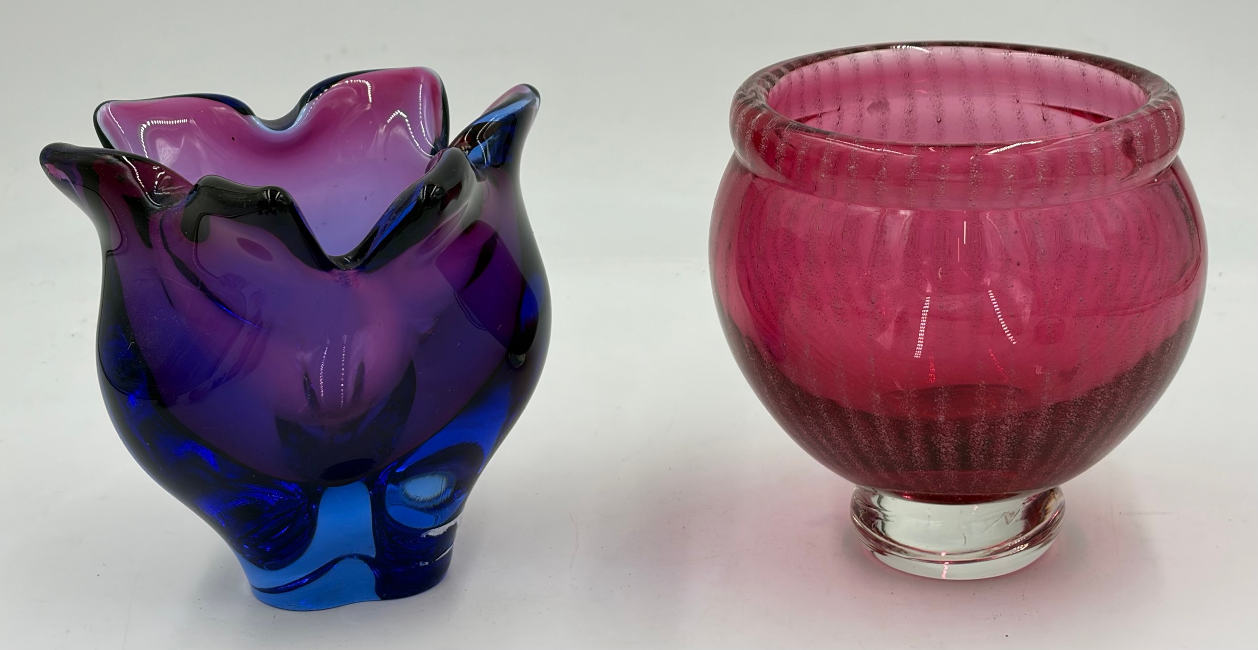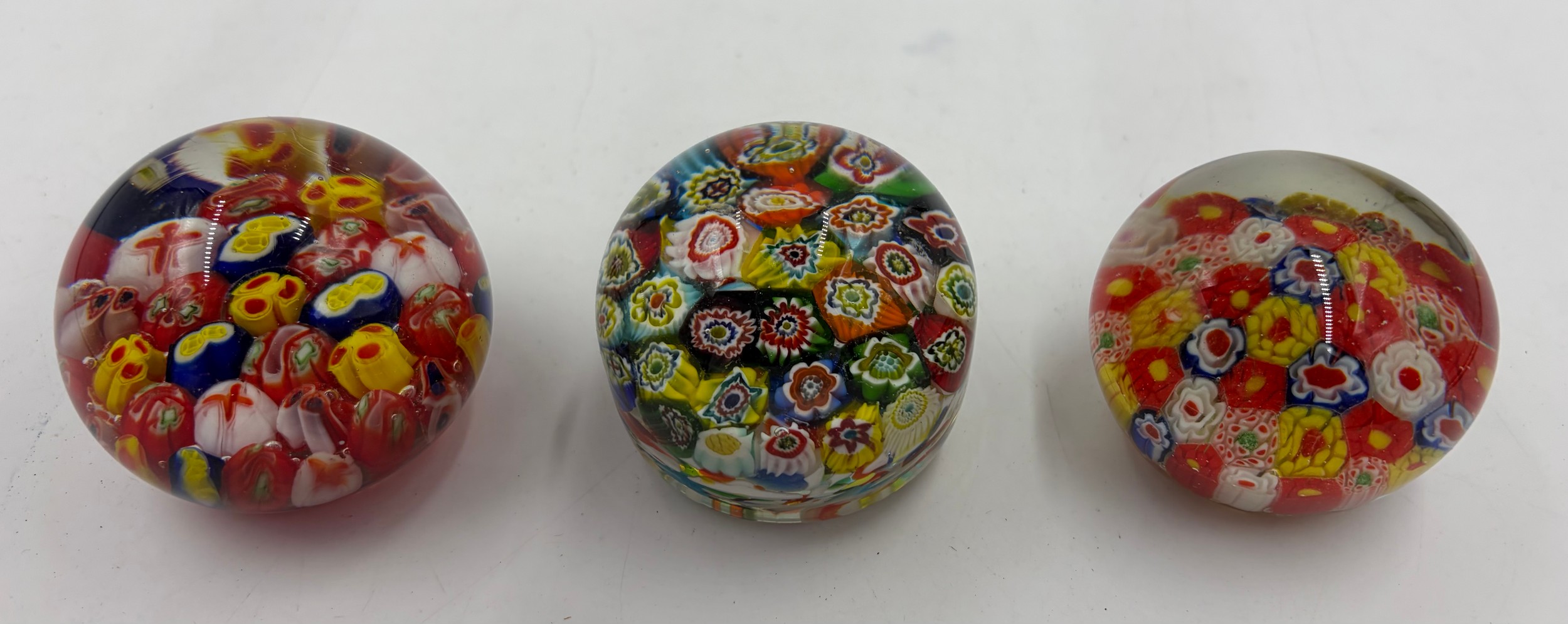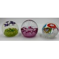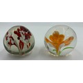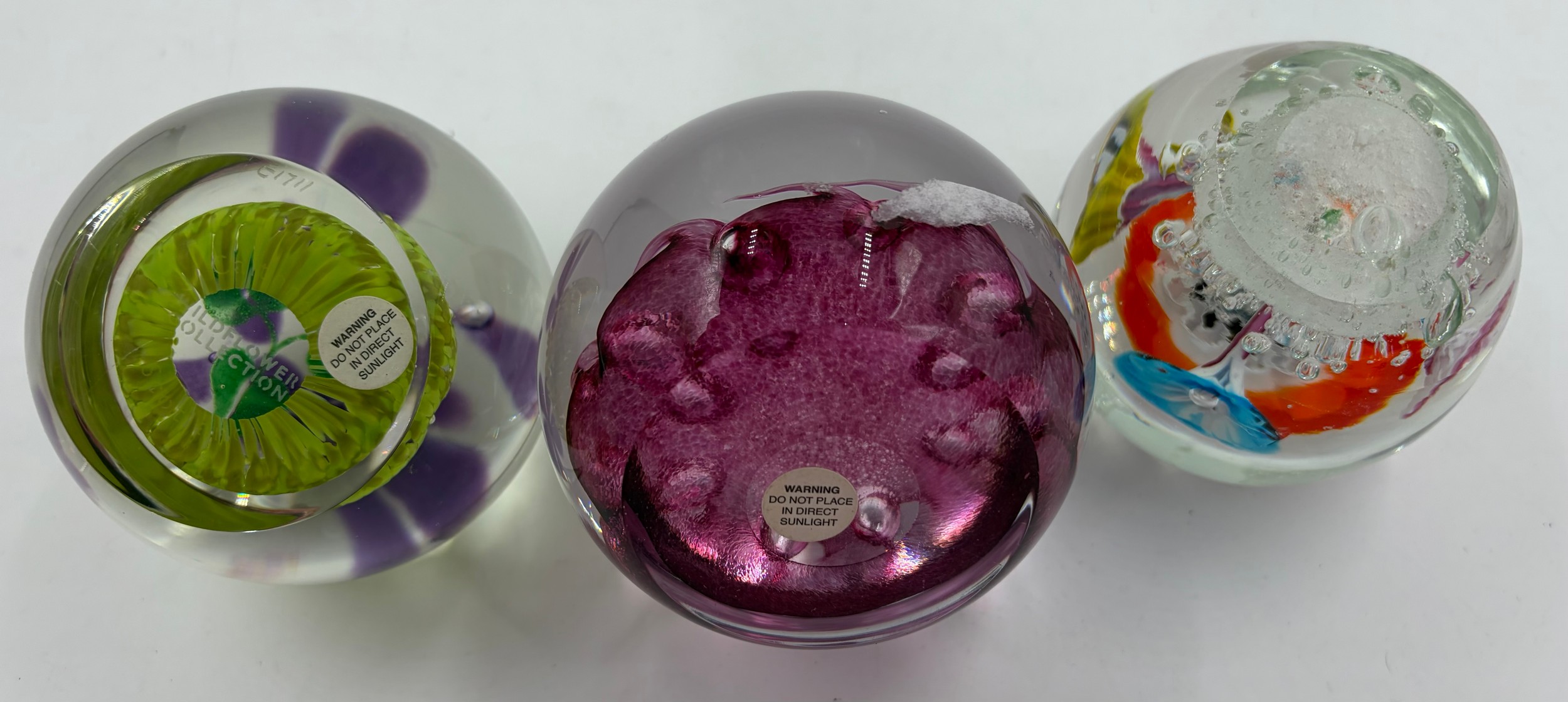Vintage glass to include eight paperweights, one marked Caithness Wild flower collection together with two vases.