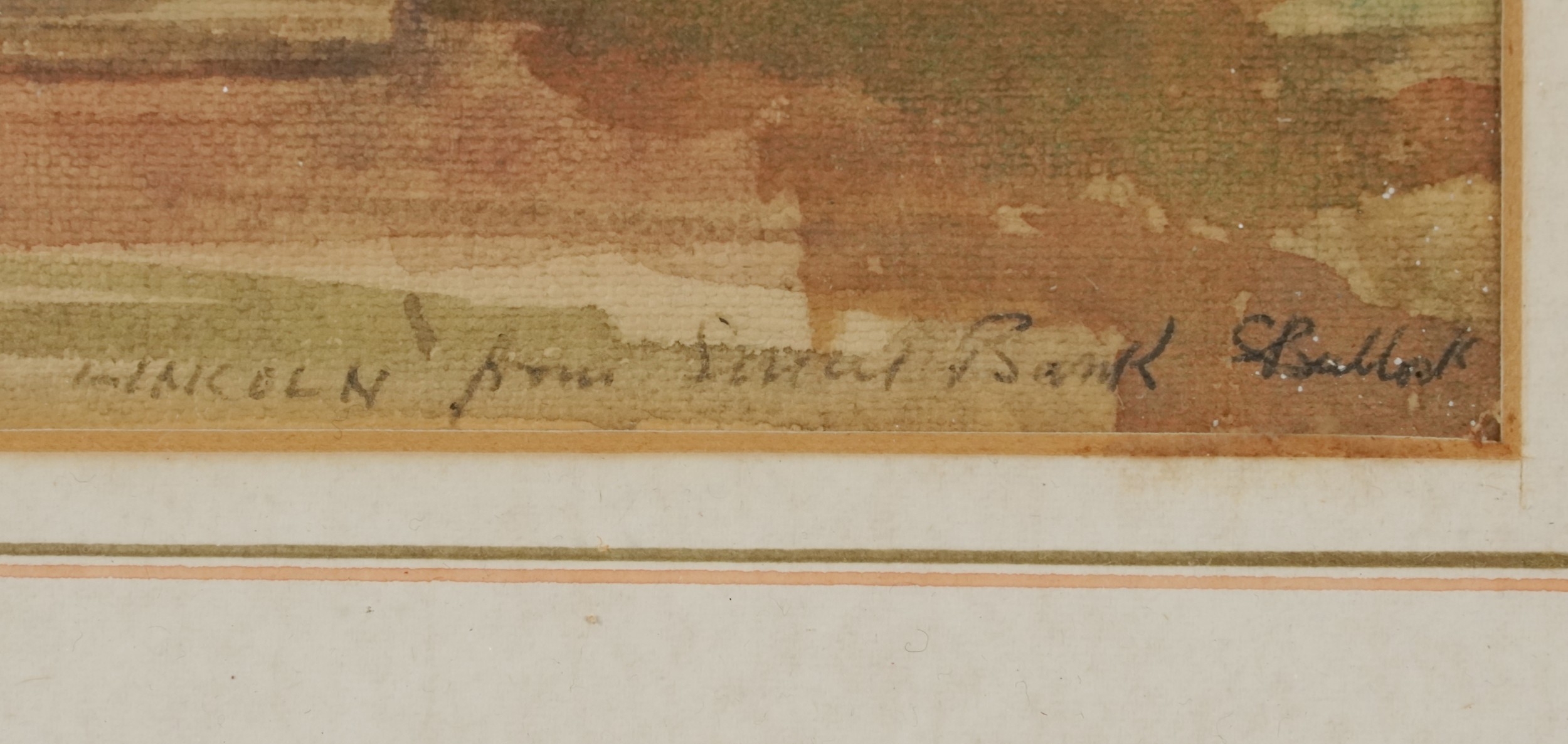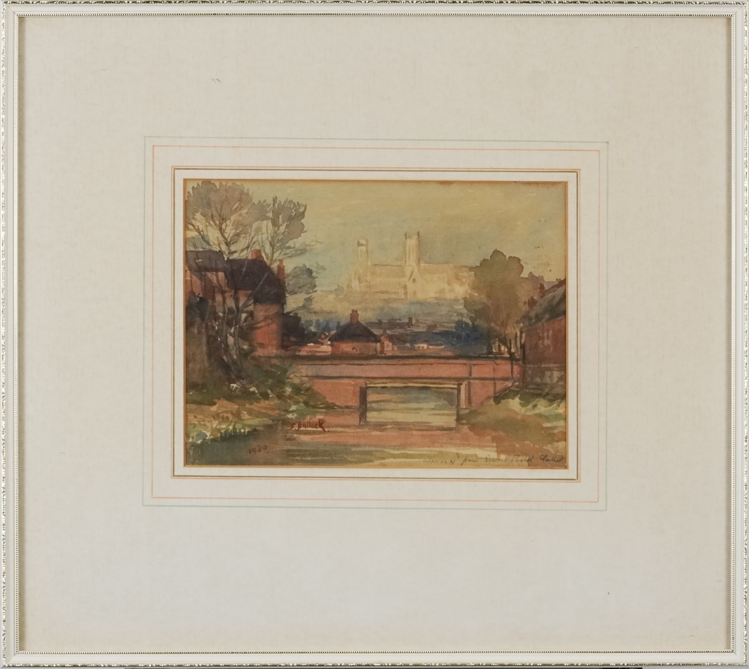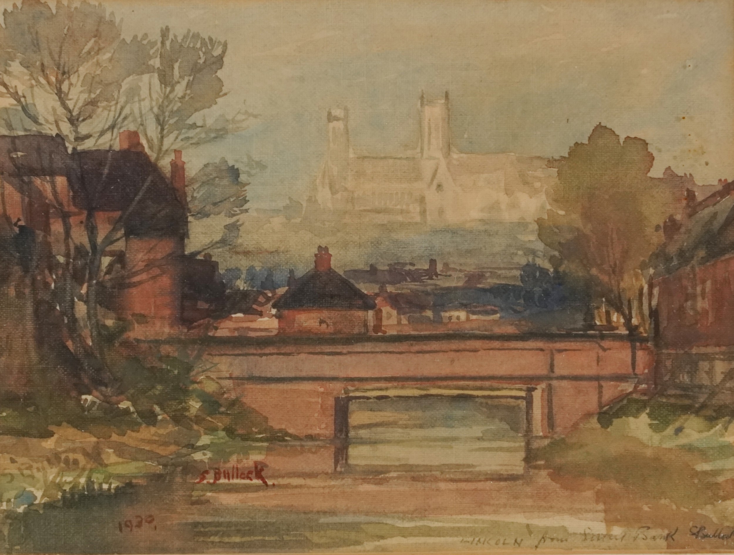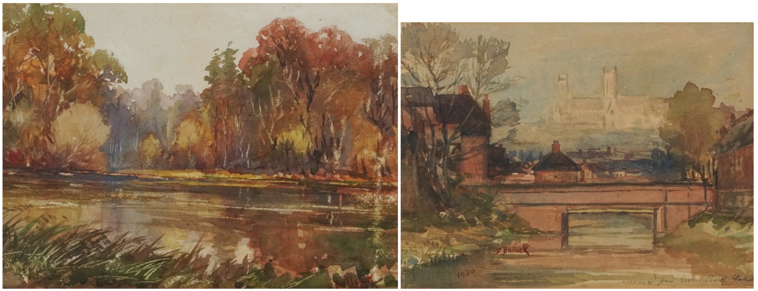 S. Bullock - Lincoln from Severn Bank, early 20th century British school watercolour on paper, signed and dated 1930, framed and glazed, 17cm x 23cm together with another work by the same hand.