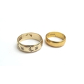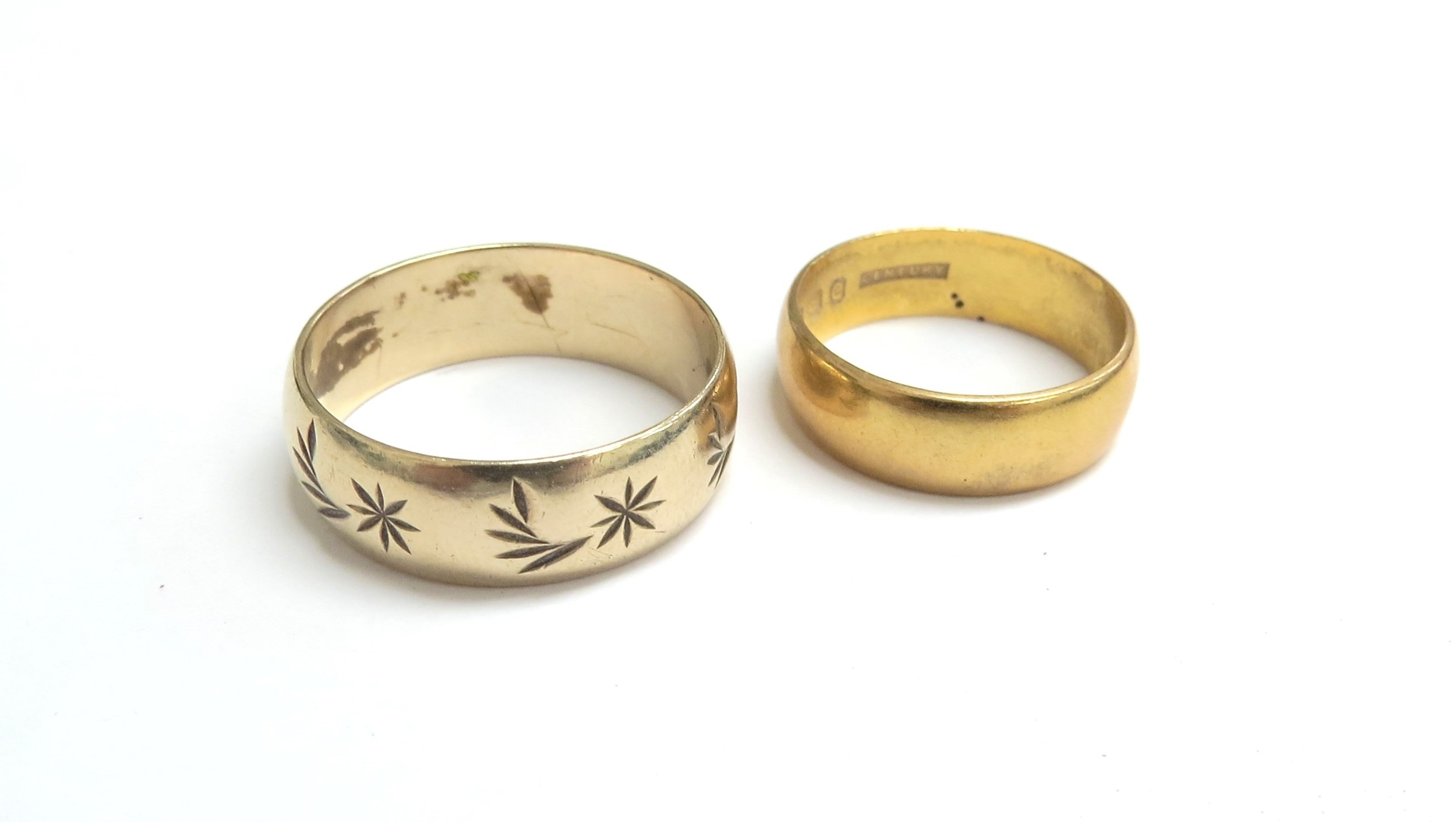 A 9ct gold band, size R, 4.5g and a 22ct gold band, size L, 3.9g (2)