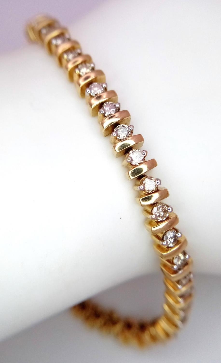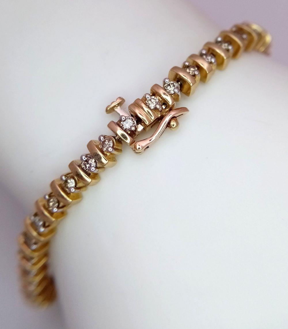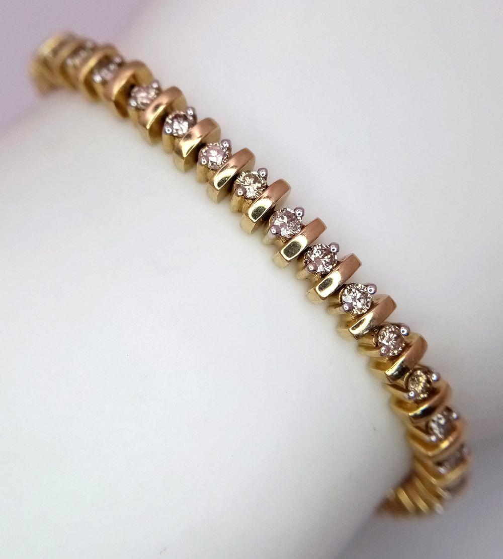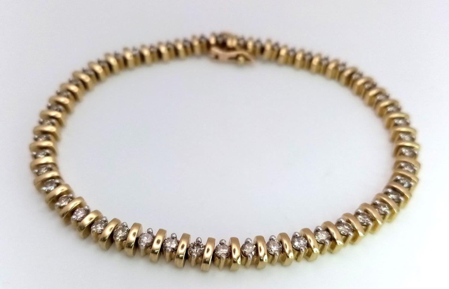 A 9K YELLOW GOLD DIAMOND TENNIS BRACELET. 2CTW. 14.7G. 19CM. SC3065