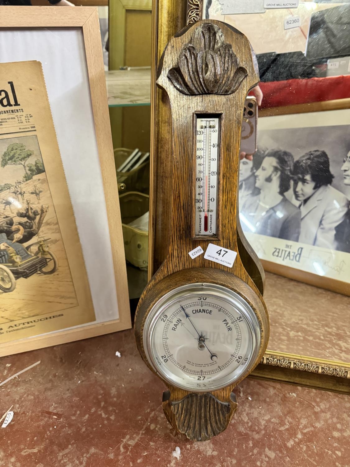 VINTAGE CARVED WOOD BAROMETER