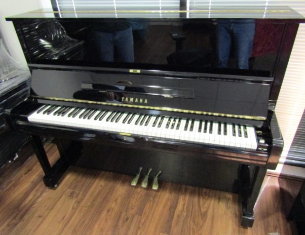 Yamaha (c1987) A Model U1A upright piano in a bright ebonised case.