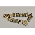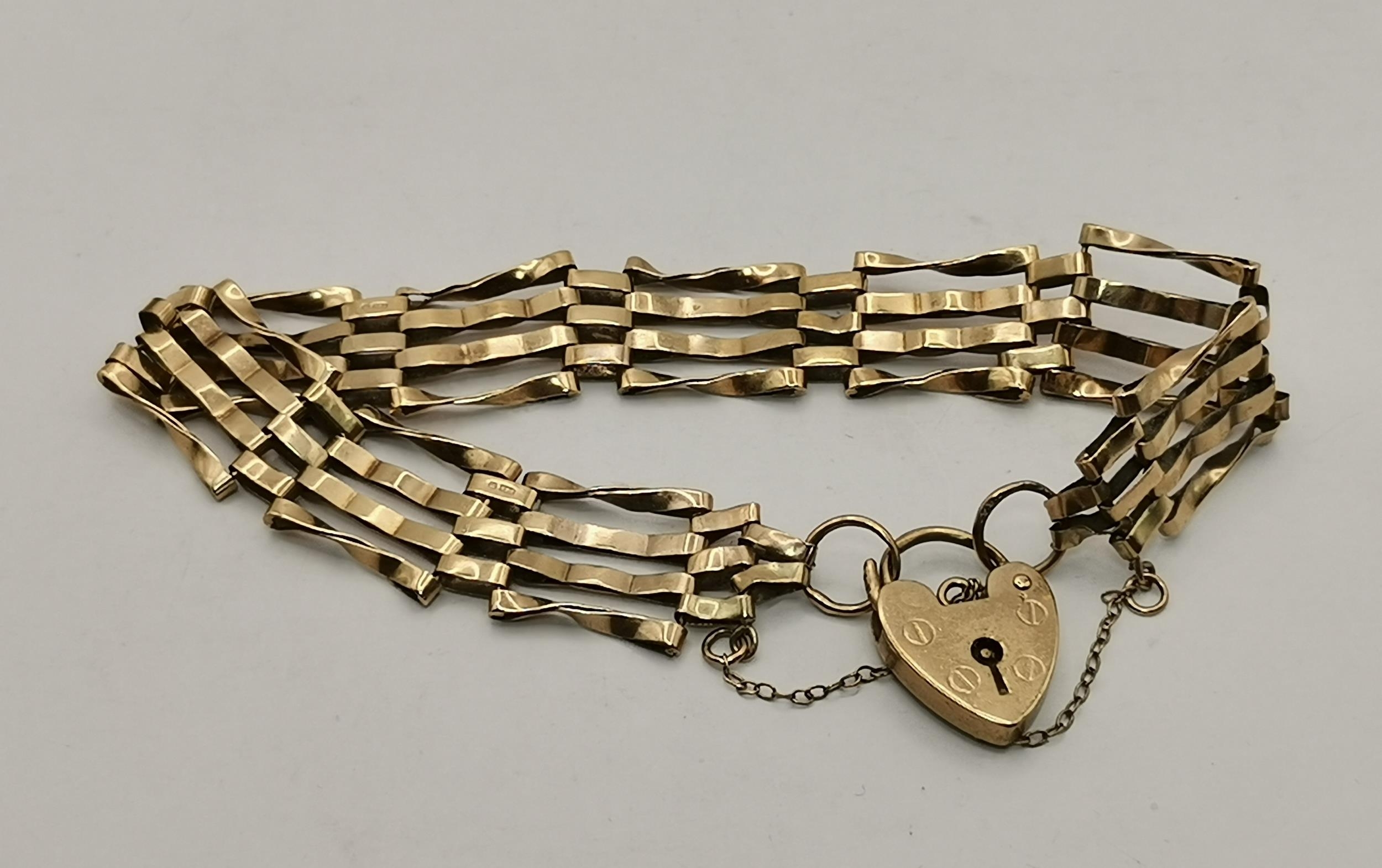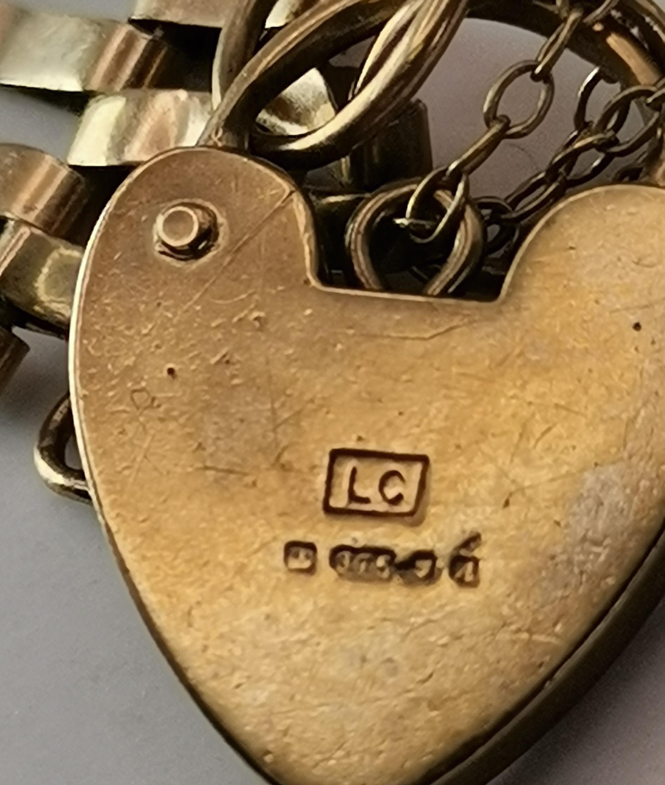 A 9 carat gold gate-link bracelet with heart padlock clasp, hallmarked 375. 17.5cm long, 8.9g