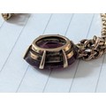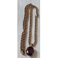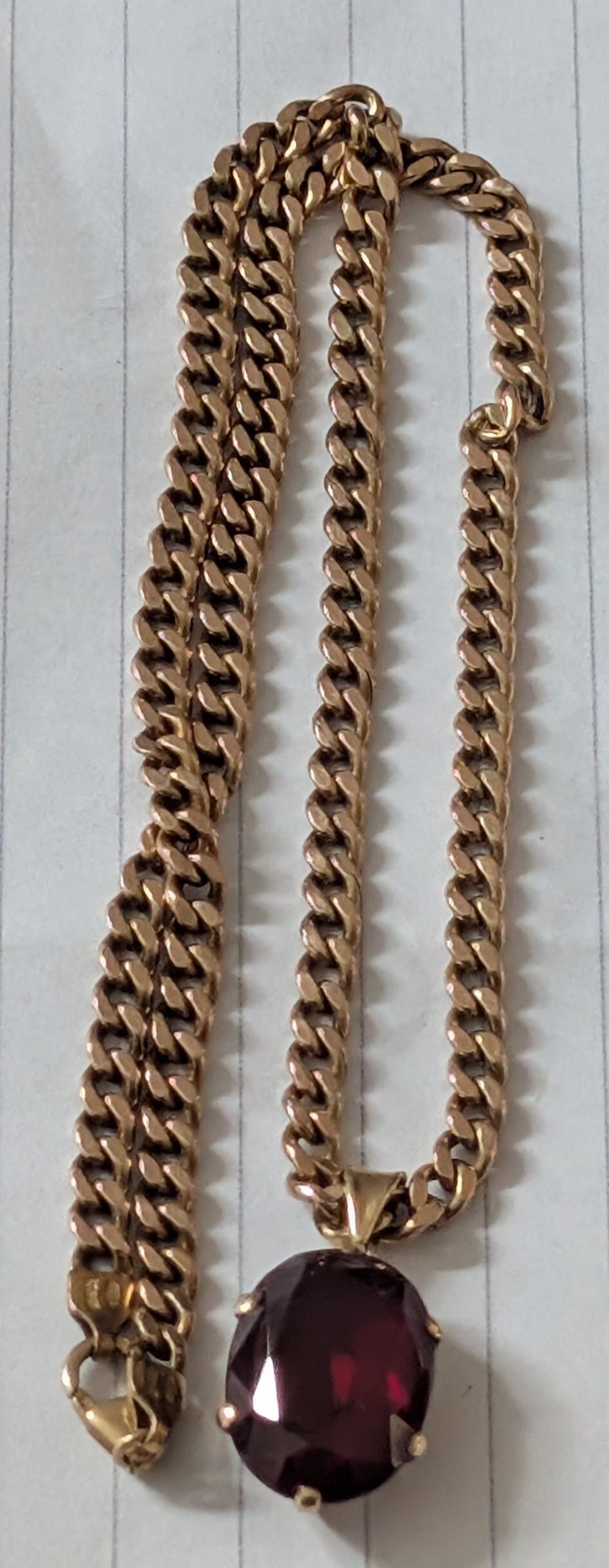16" 375 9k Italy Stamped Gold Curb Link Chain with an Hallmarked Gold Mounted Oval Large Garnet Pendant - 14.5 gm