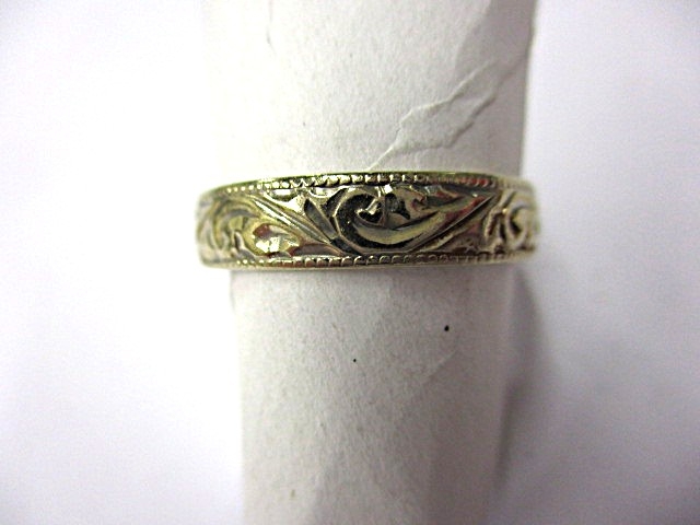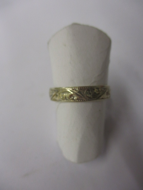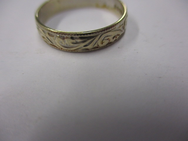 A vintage 750 gold wedding band, approx ring size ‘L+’, approx width 3.8mm, approx weight 2g, in useable pre-owned condition