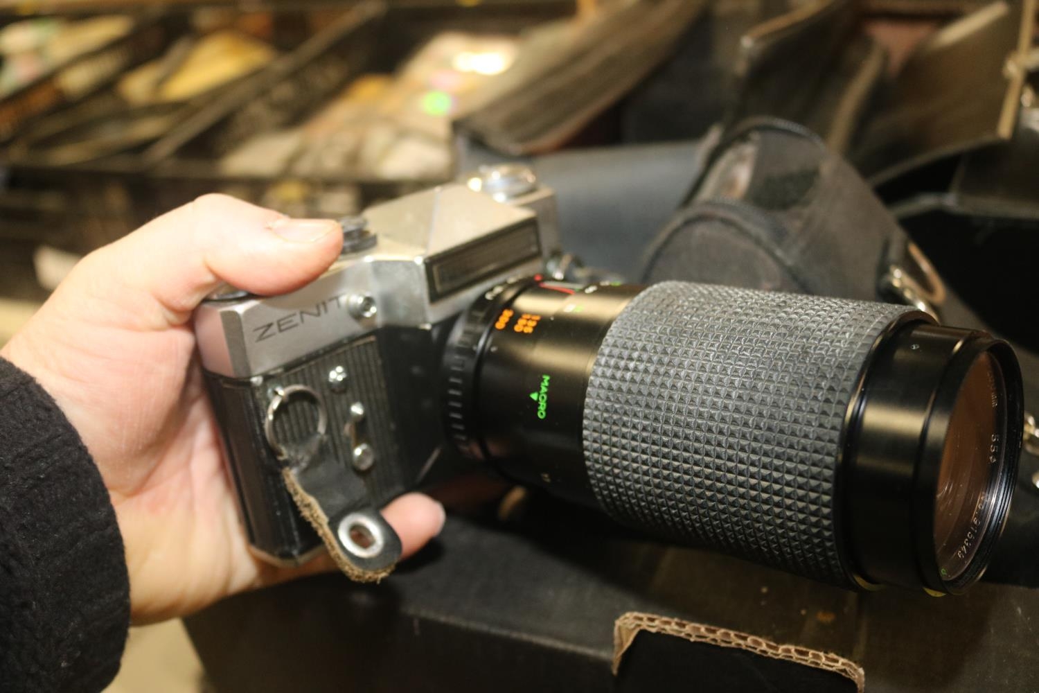 BOX OF VINTAGE CAMERA EQUIPMENT