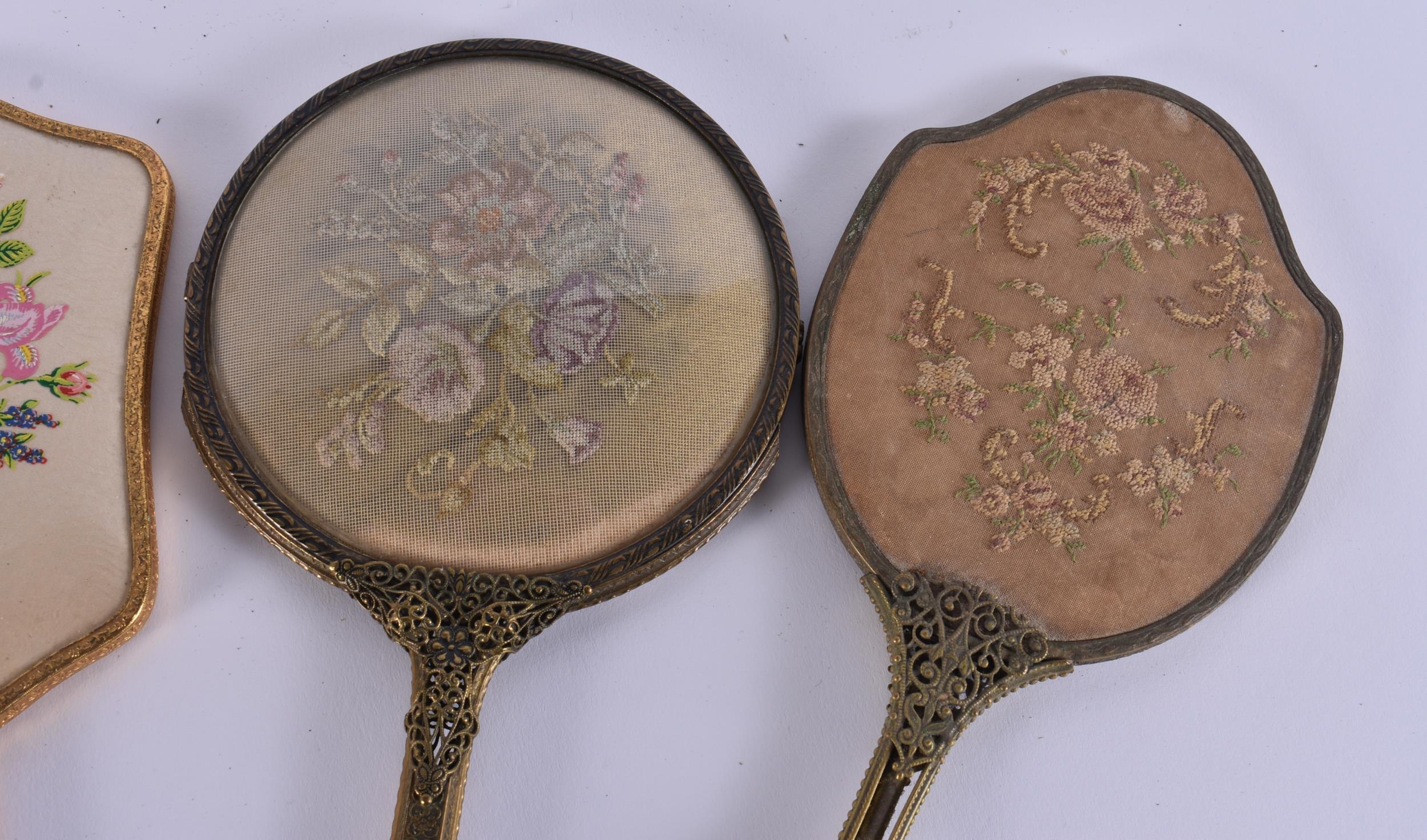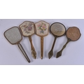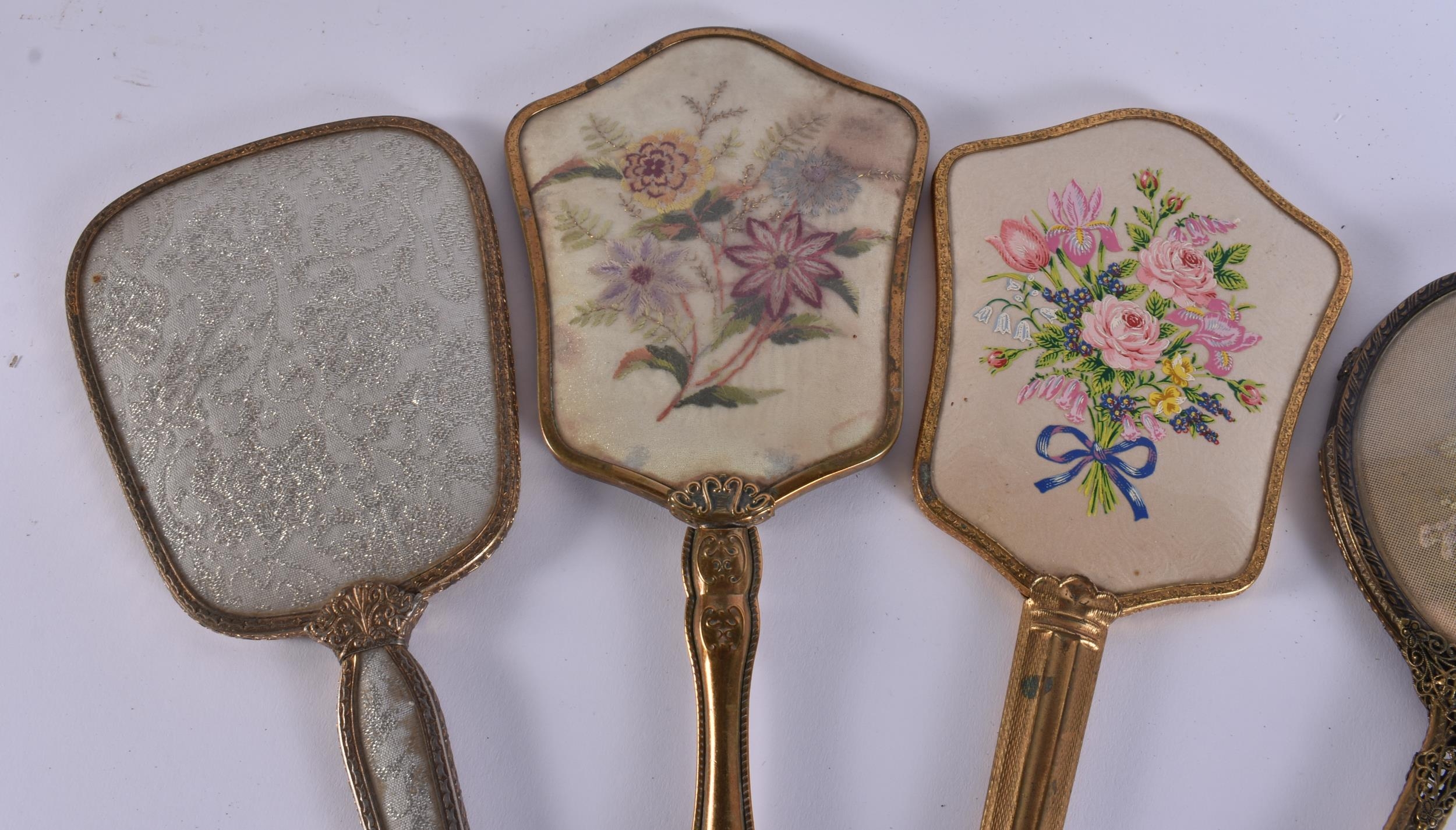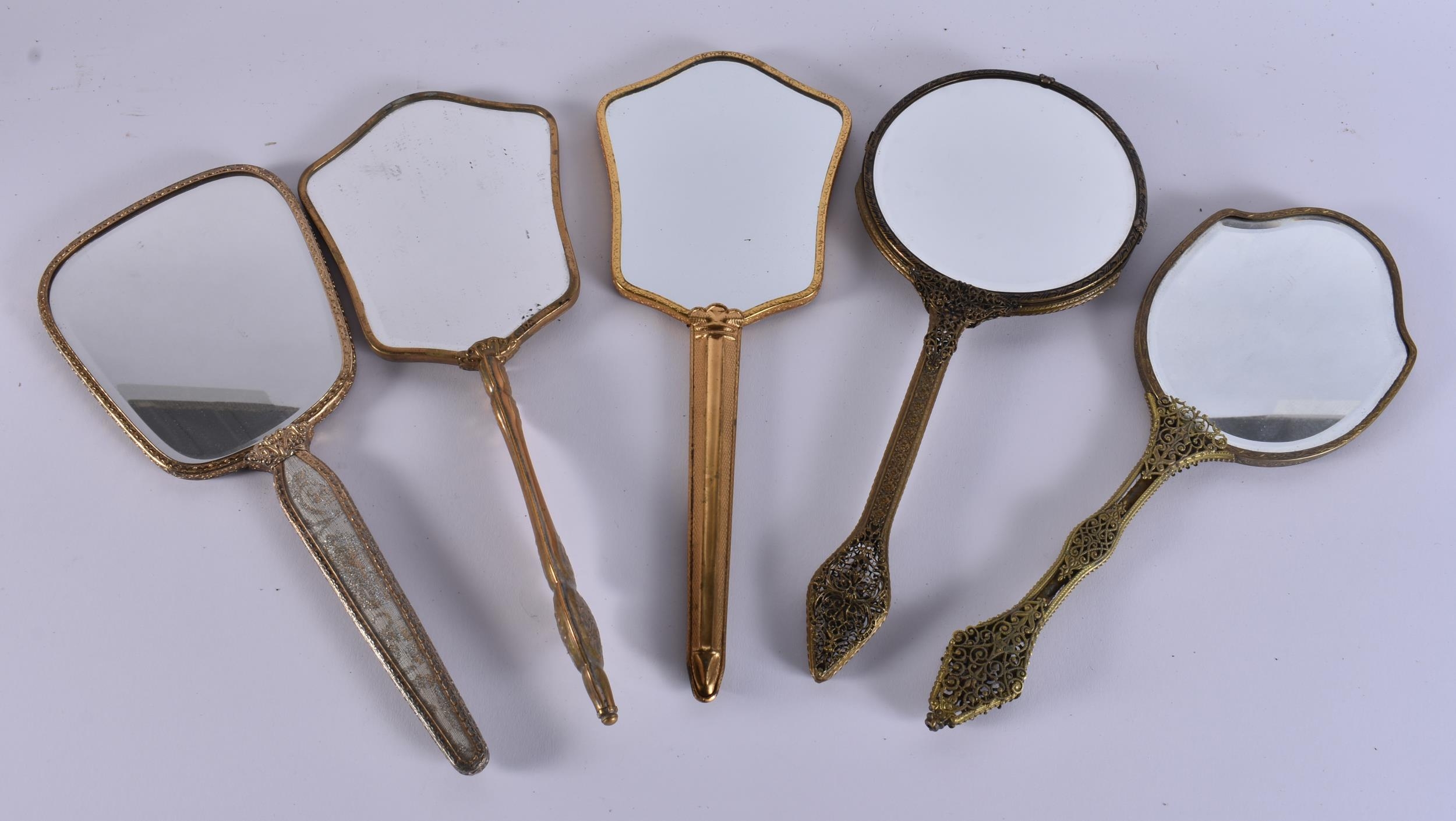 FIVE VINTAGE GILT METAL VANITY MIRRORS. 34 cm long. (5)