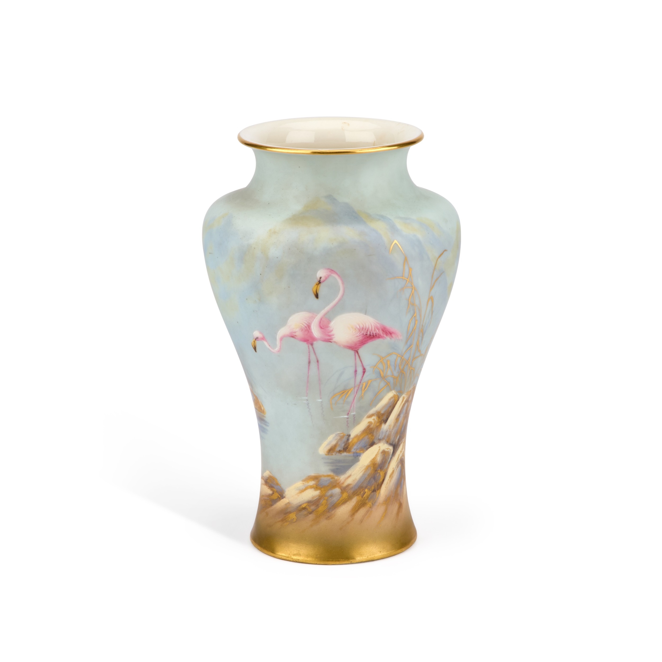 of baluster form, painted with flamingos by the water's edge, shape no. 2195, c.1912, puce printed factory mark. 19.5cm high