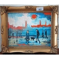 James Lawrence Isherwood (1917-1988), "Wigan Skyline", oil on board, unsigned, 25cm x 19cm.
