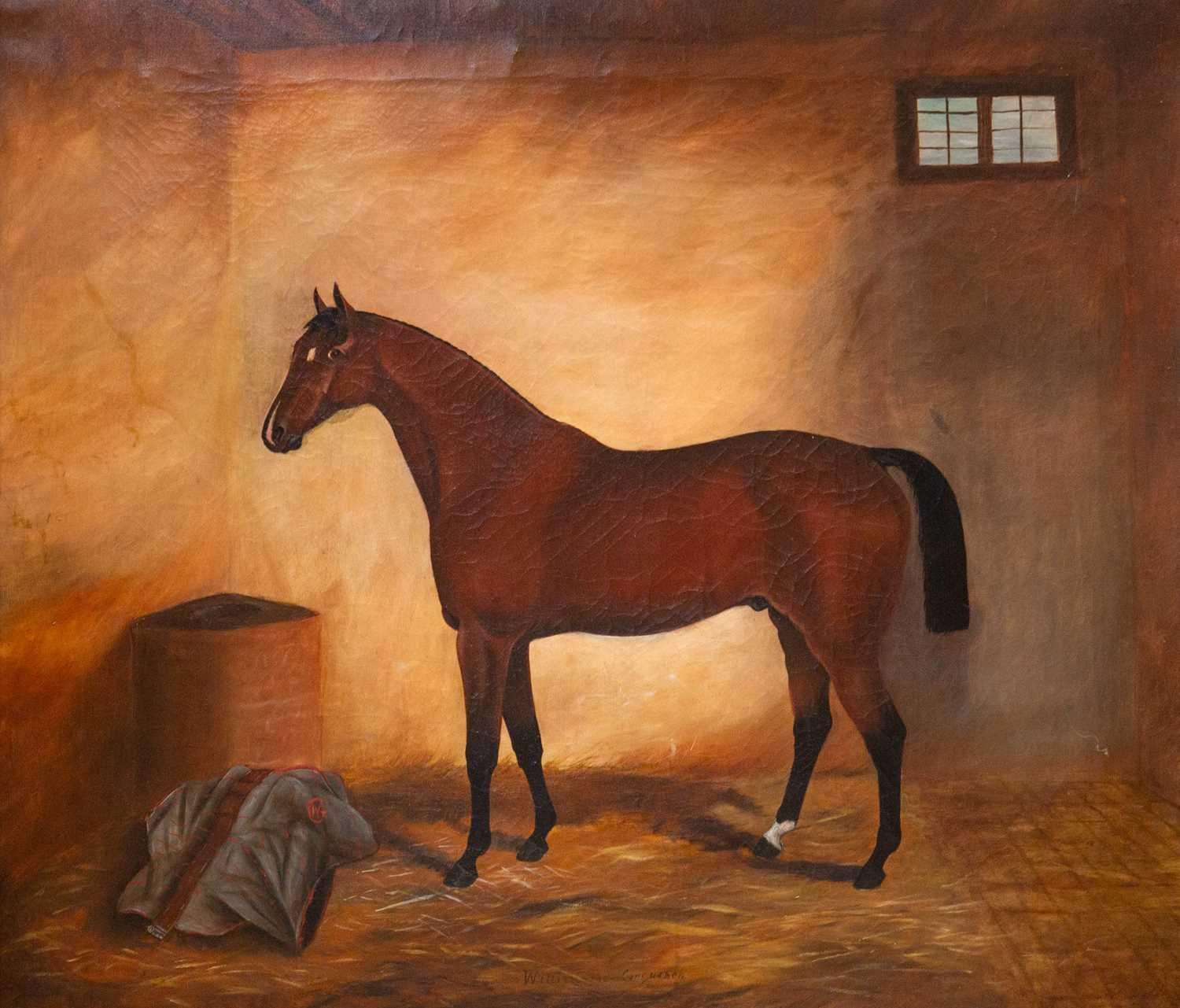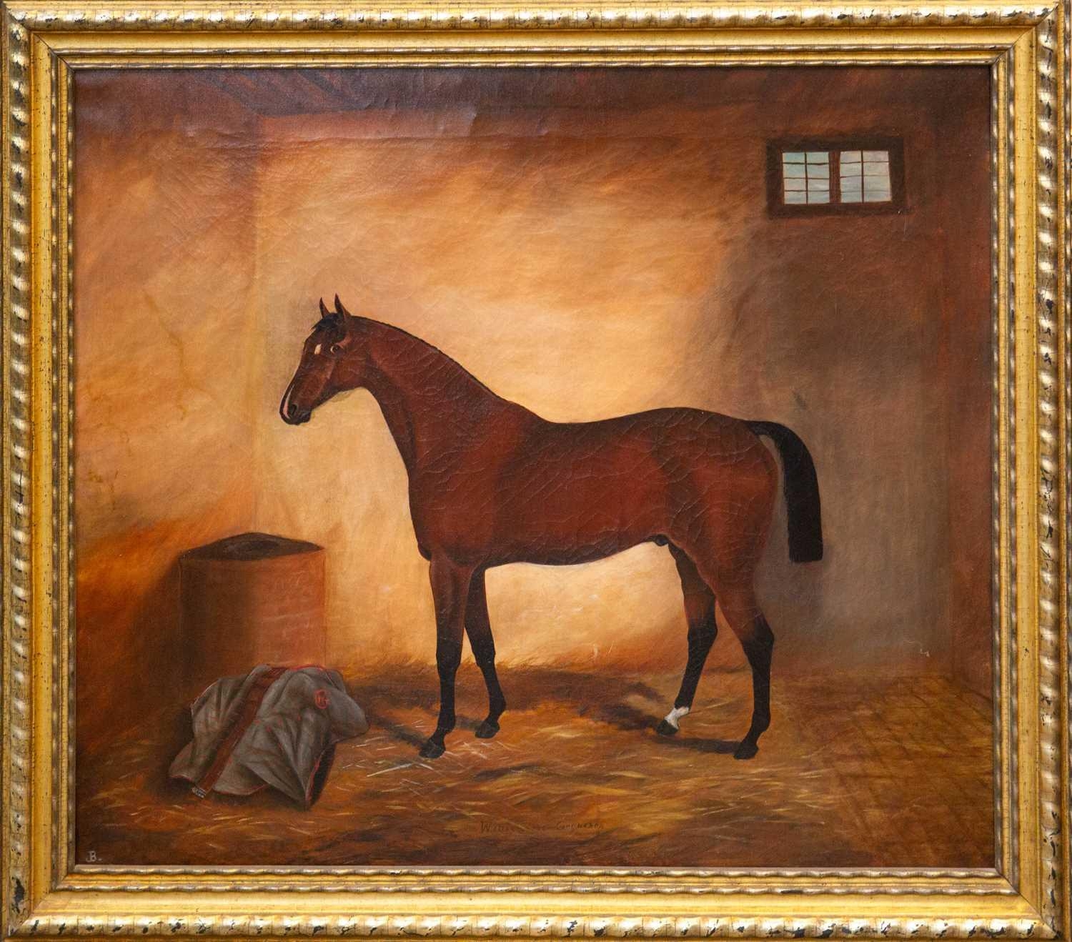 English School, 19th century. The racehorse William the Conqueror. Oil on canvas Initialed JB 69.5cm x 80cm frame size 83.5cm x94cm.