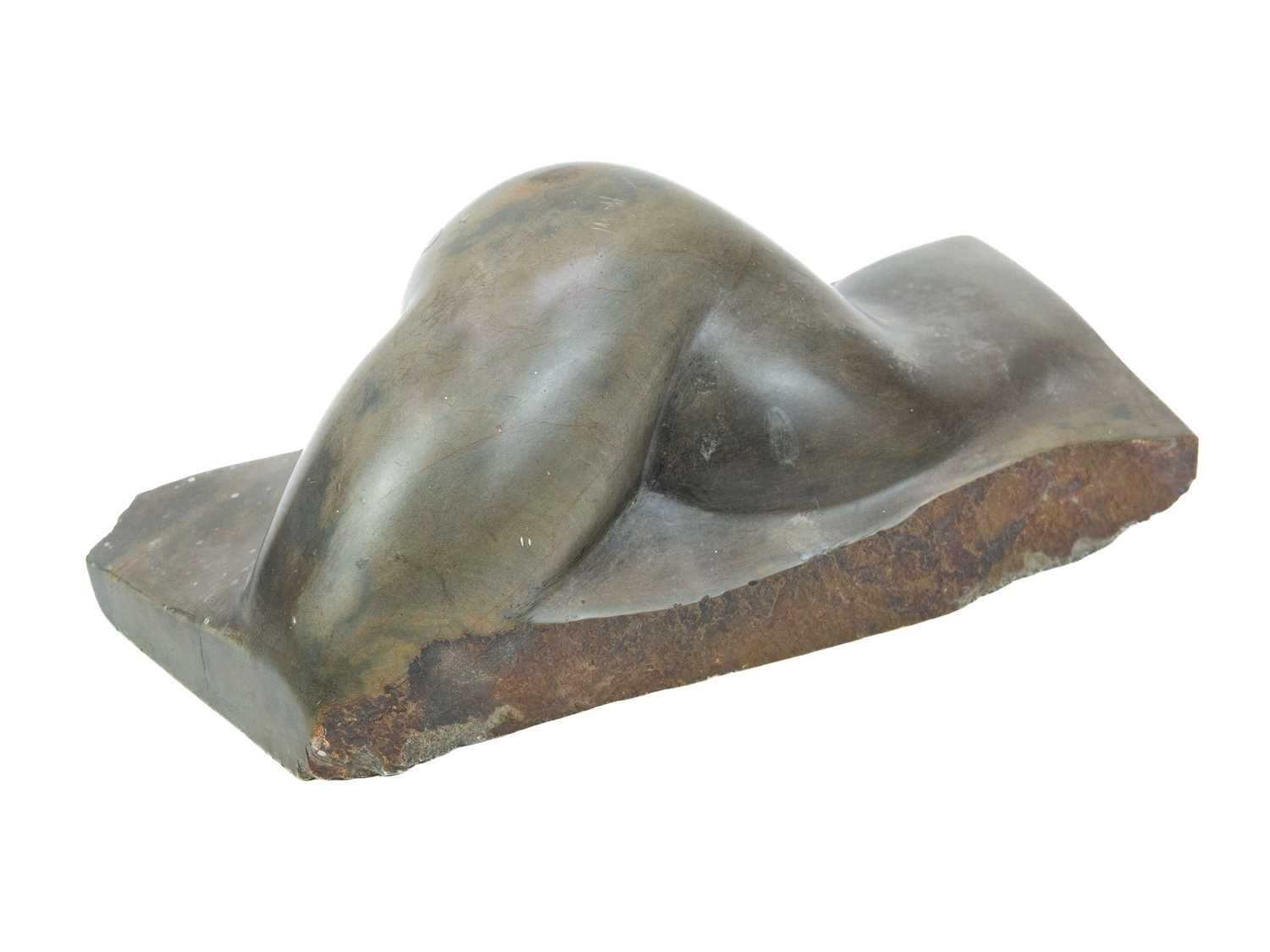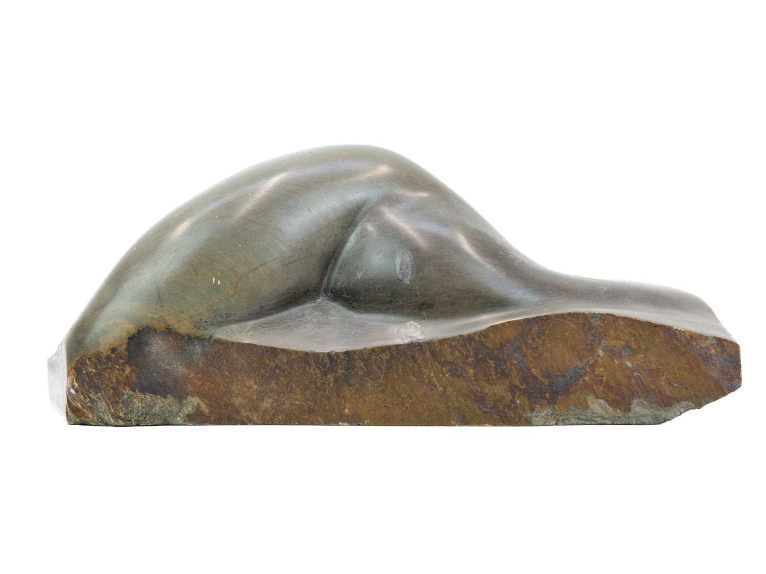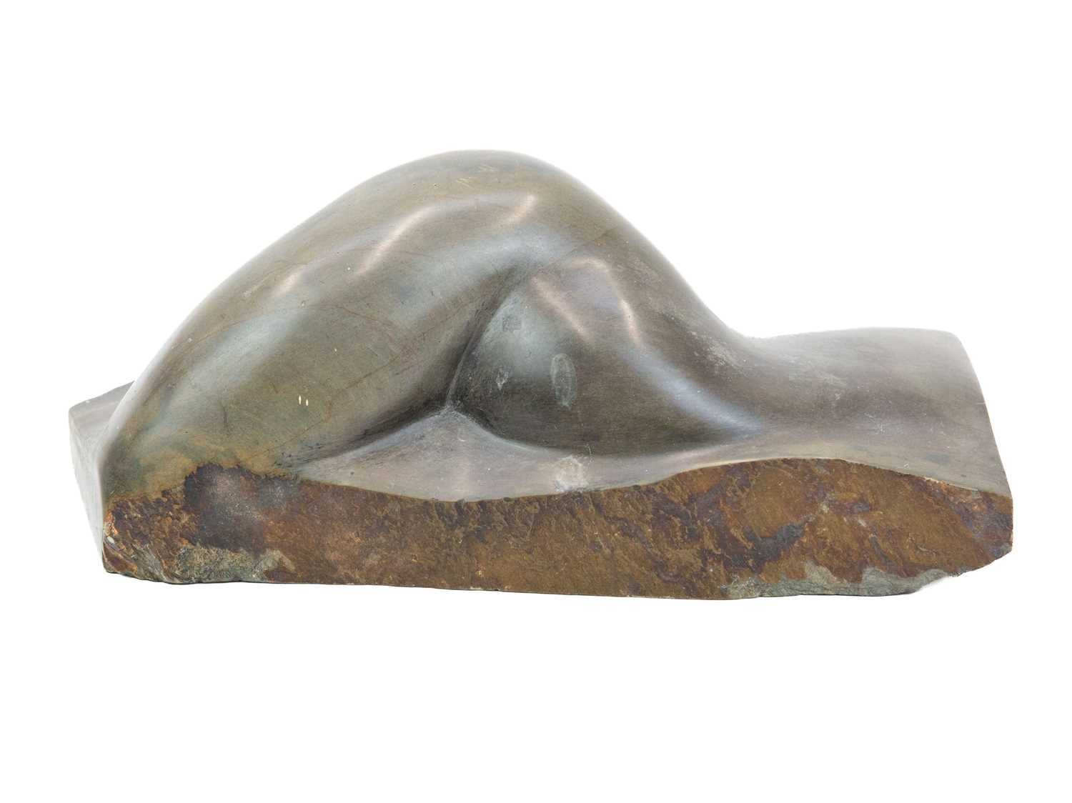 § Max BARRETT (1937-1988) Female Form Carved stone, signed to base, height 14cm, length 32cm, width 14cm.