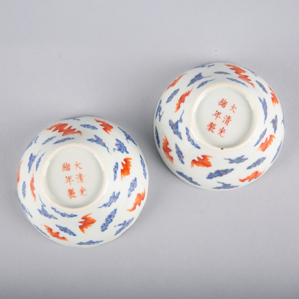 A PAIR OF CHINESE PORCELAIN 'BAT AND CLOUD' CUPS