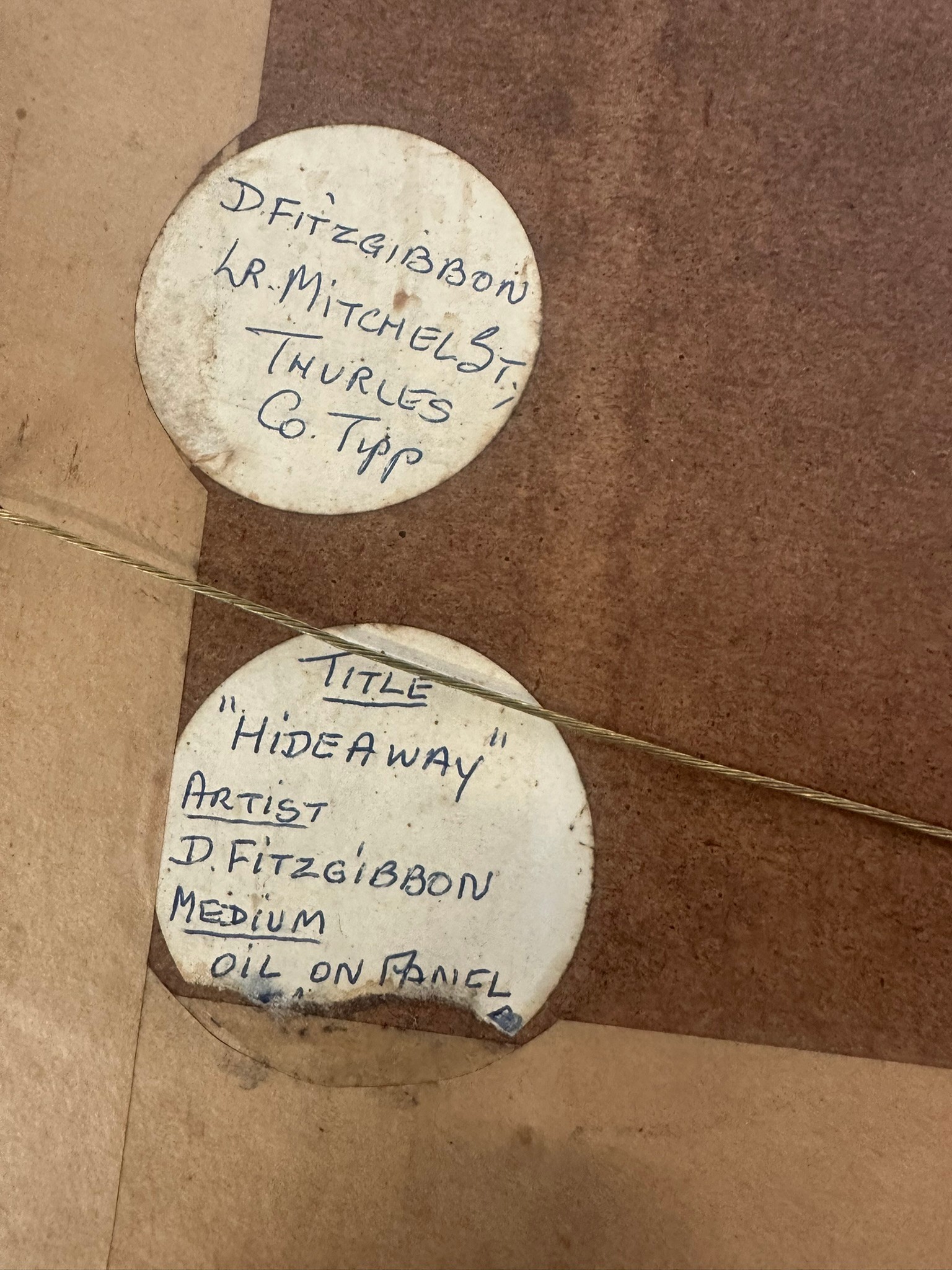 Oil on panel in a gilt frame by D. Fitzgibbon, Thurles 'The Hideaway' 24'' x 20''