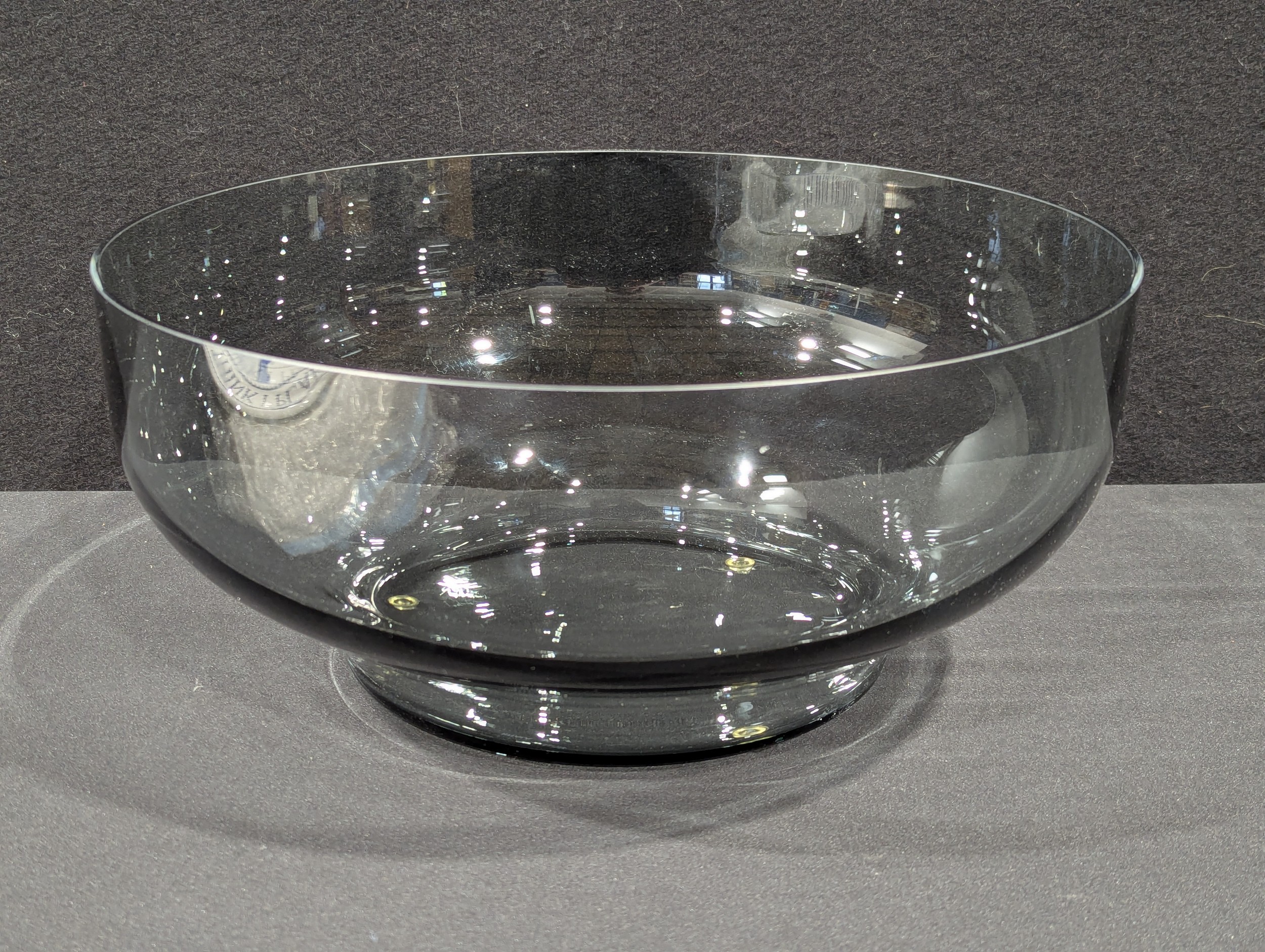 An Iittala smokey grey glass bowl by Carina Seth-Andersson, 33cm diameter, engraved mark