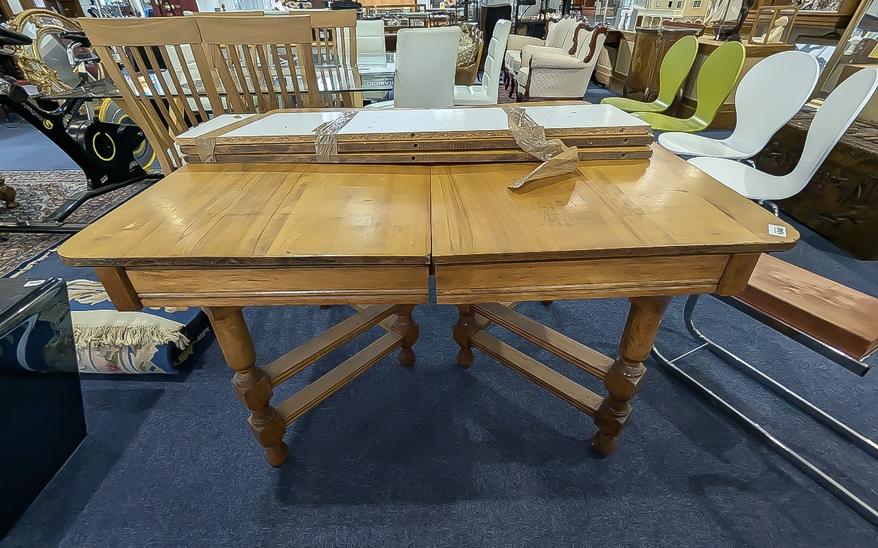 Extending Dining Table with two extra leaves, cross section supports.