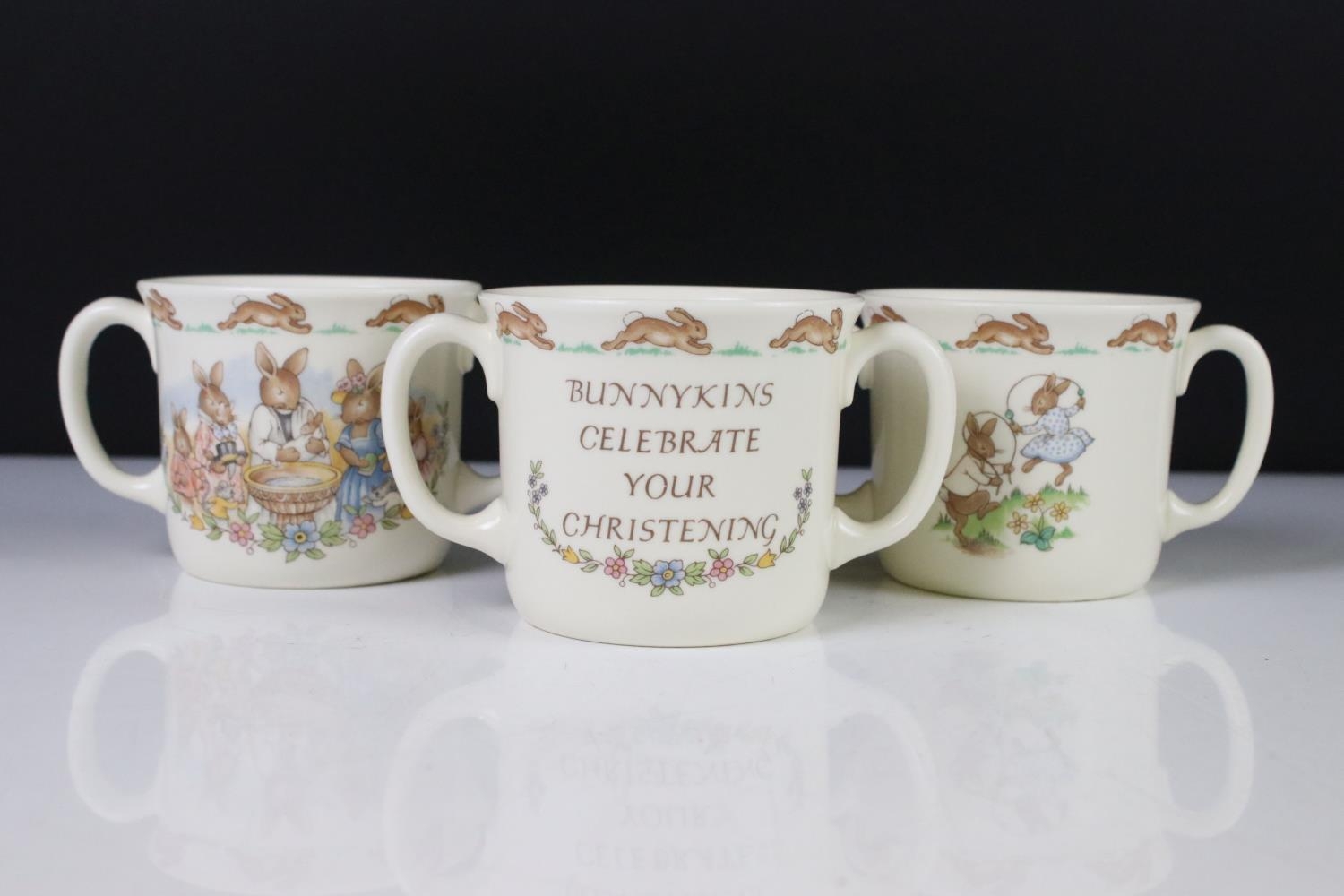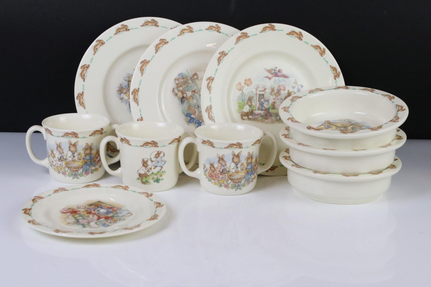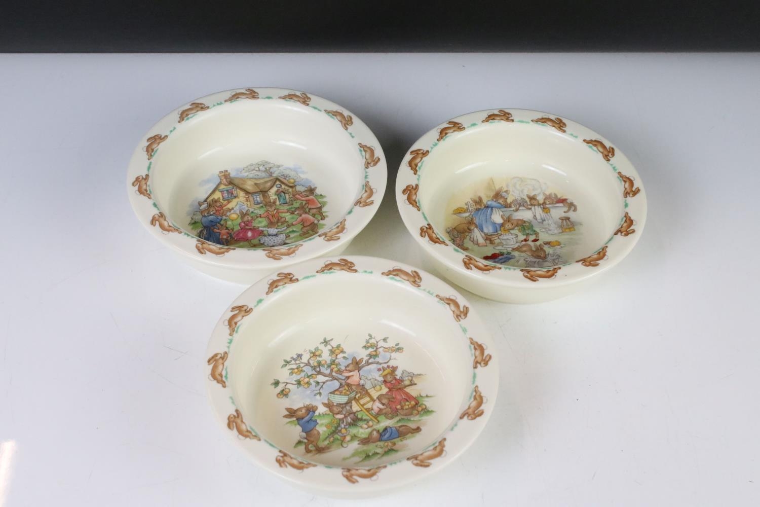 Royal Doulton Bunnykins Children's Nursery ware including three Baby Bowls, three twin handled mugs and four plates