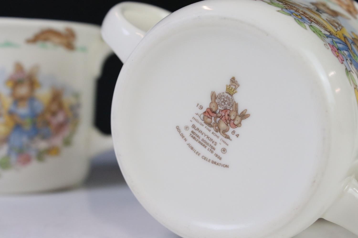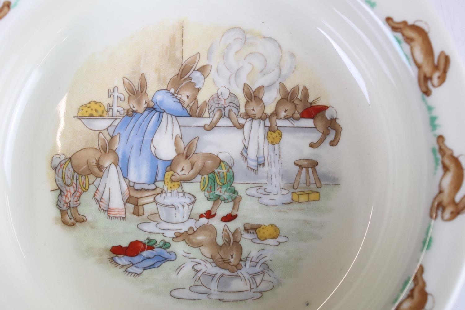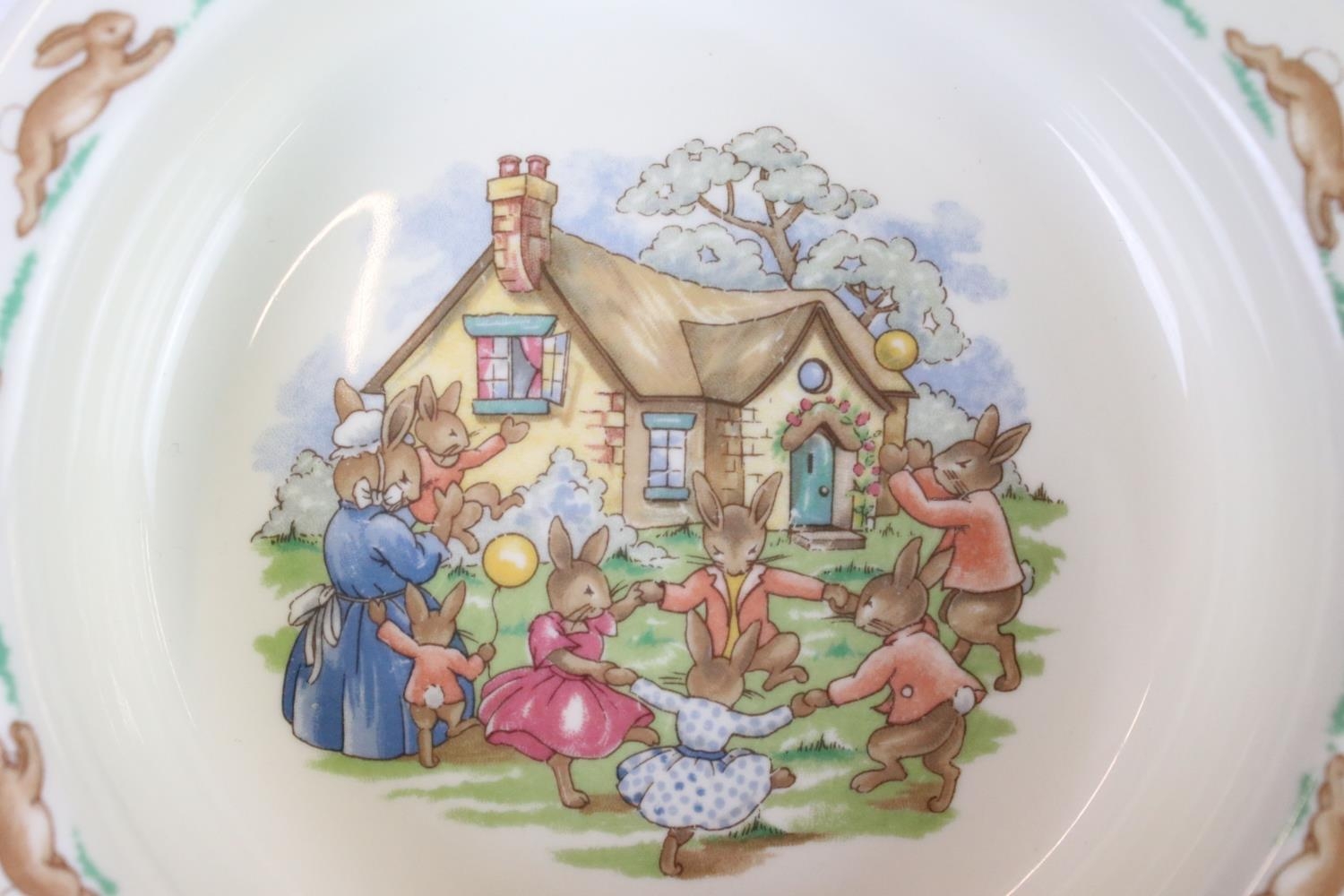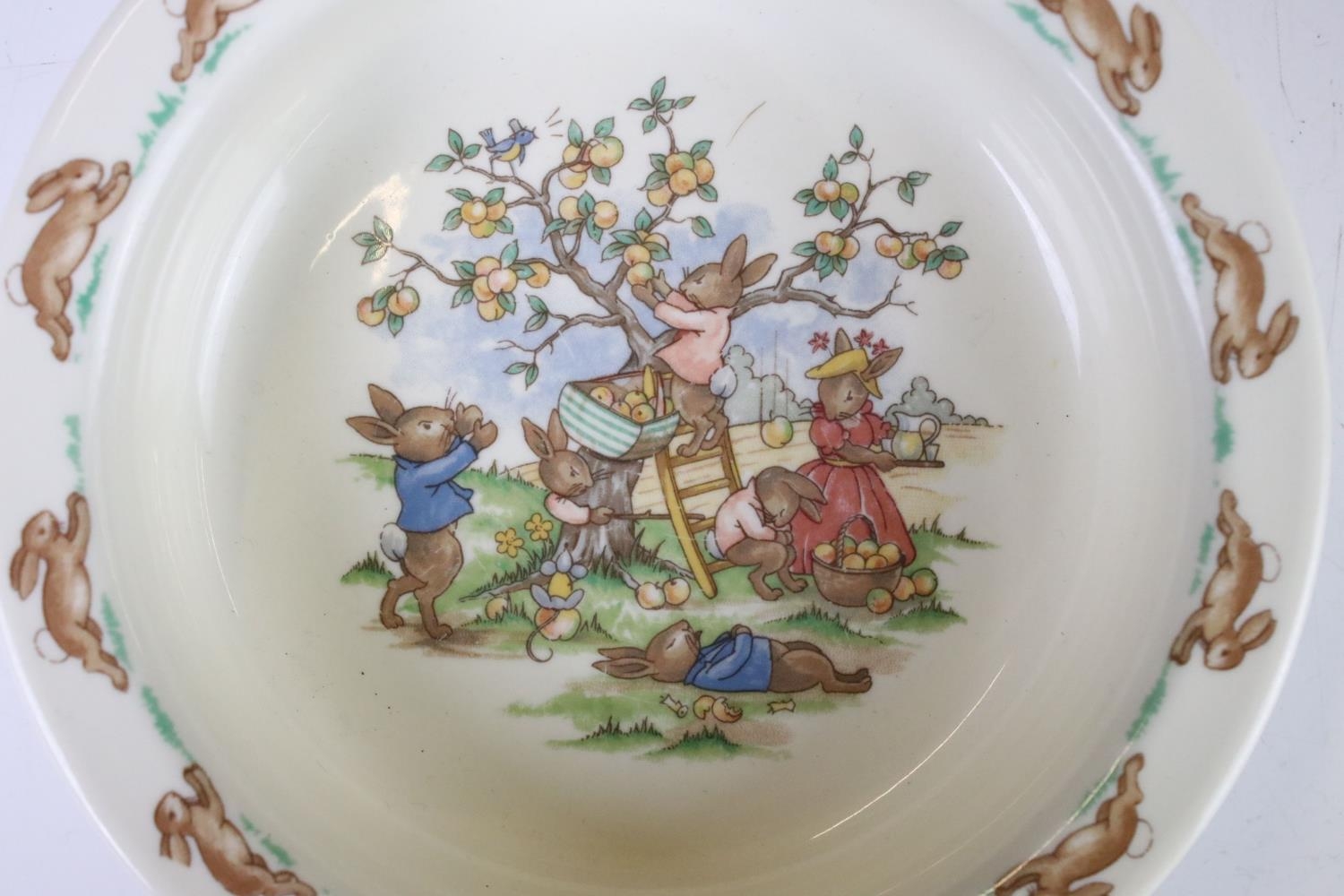 Royal Doulton Bunnykins Children's Nursery ware including three Baby Bowls, three twin handled mugs and four plates
