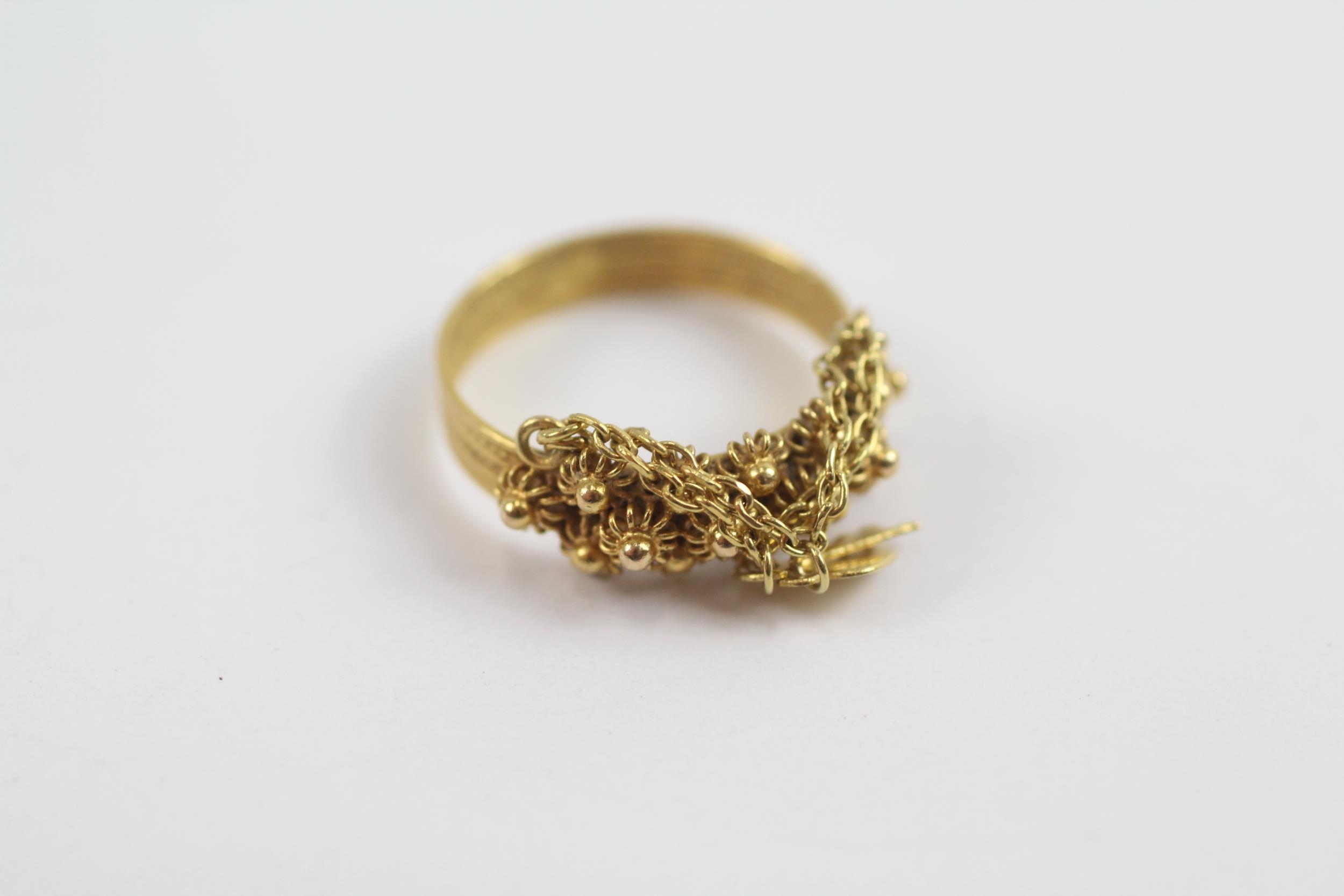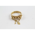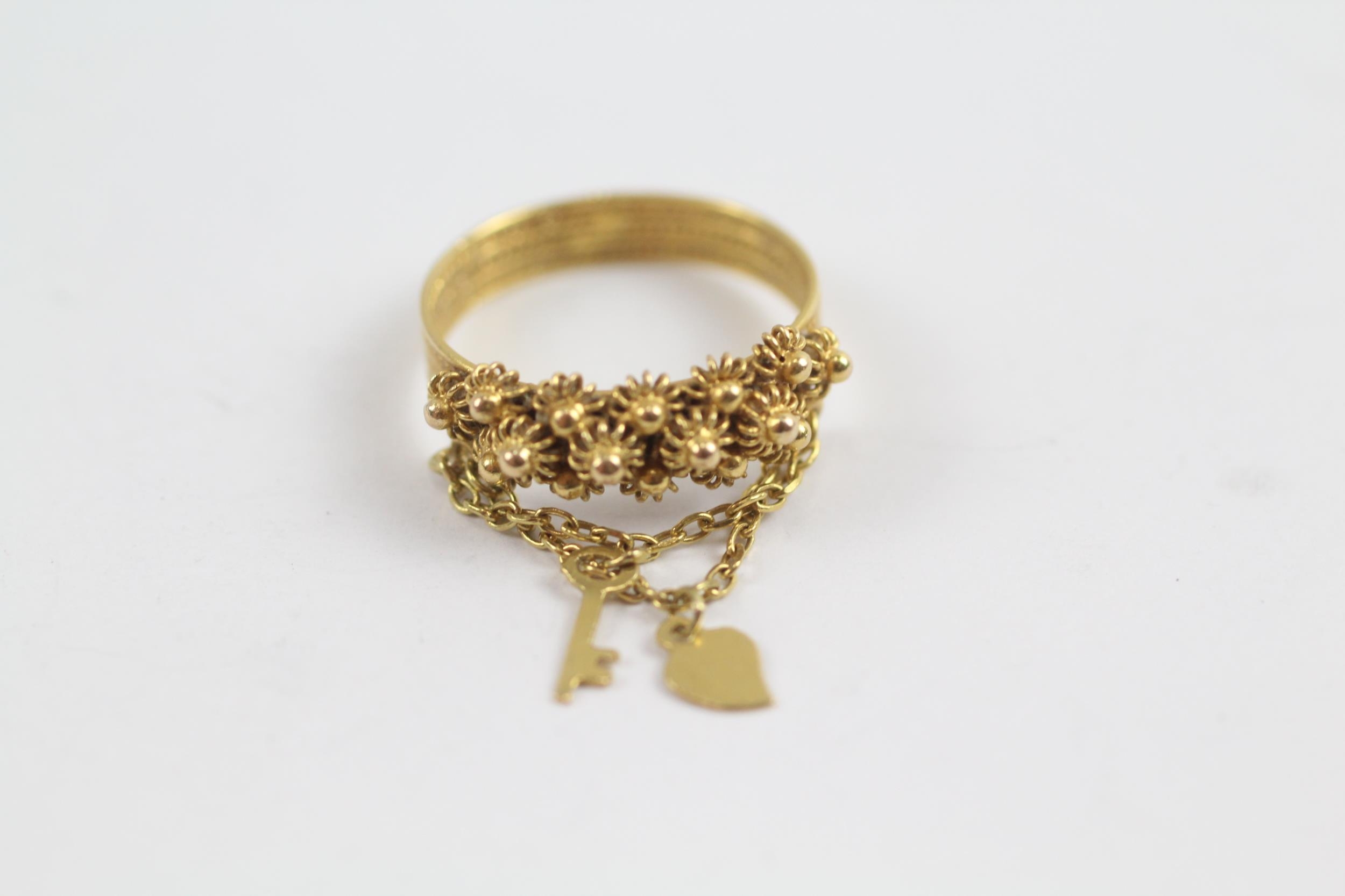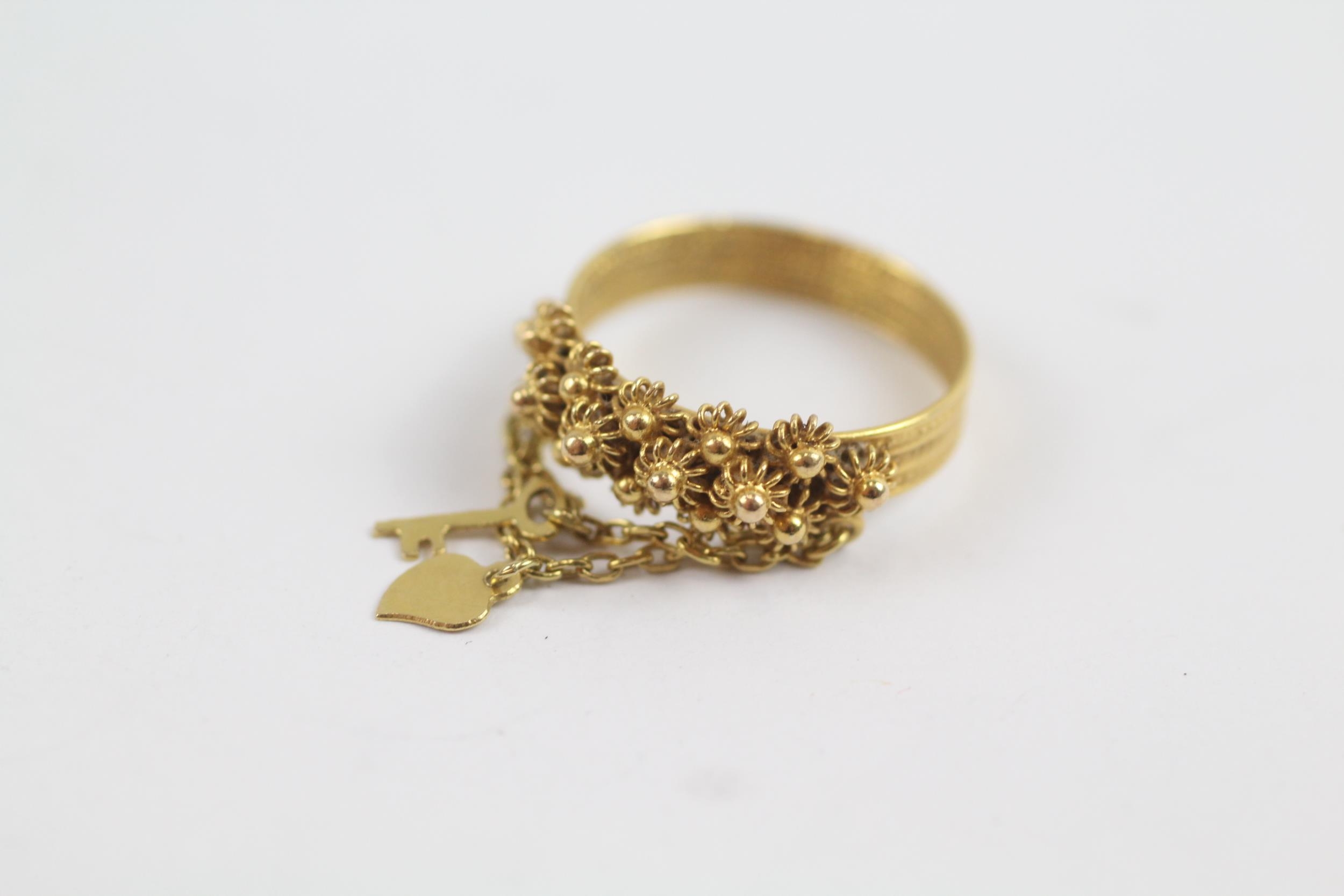 15ct Gold Vintage Keeper Ring With Key And Heart Charm Drops (3.1G) Size M
