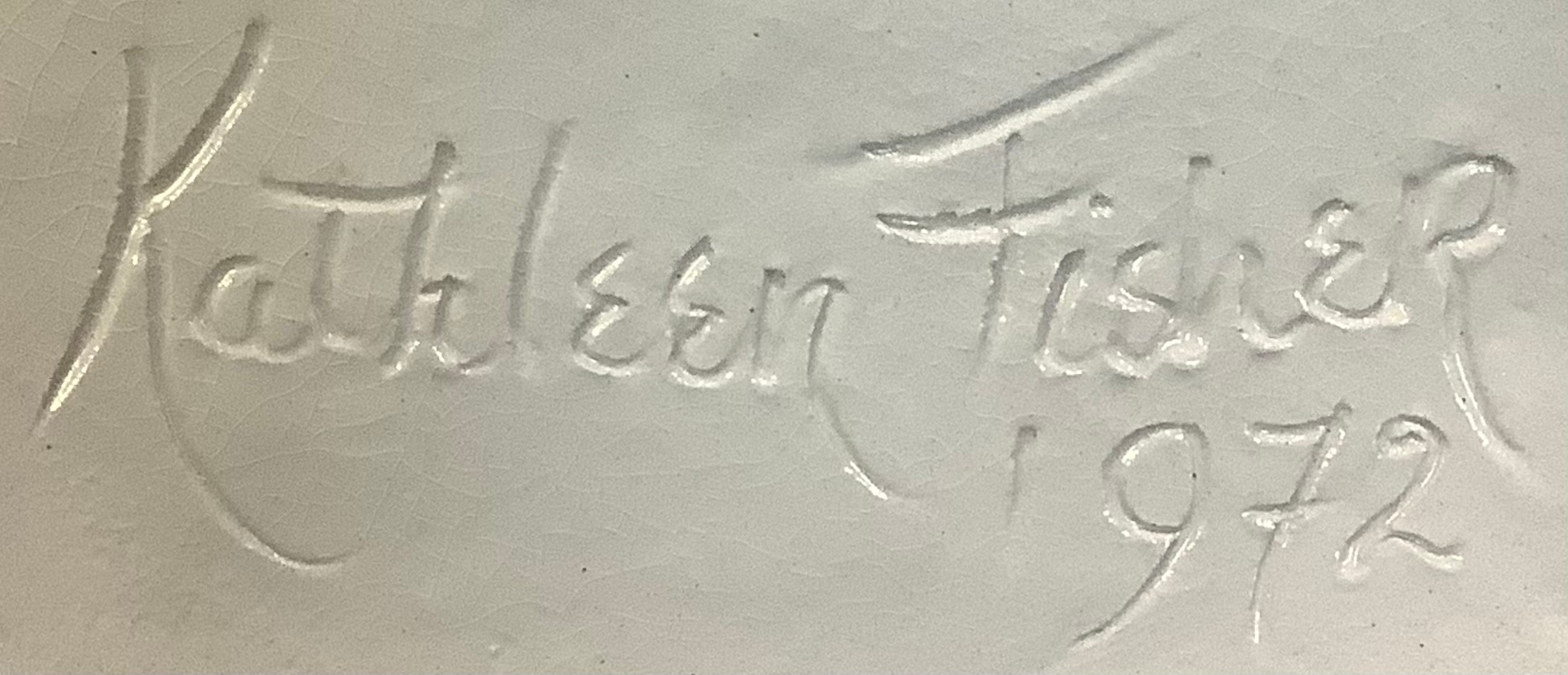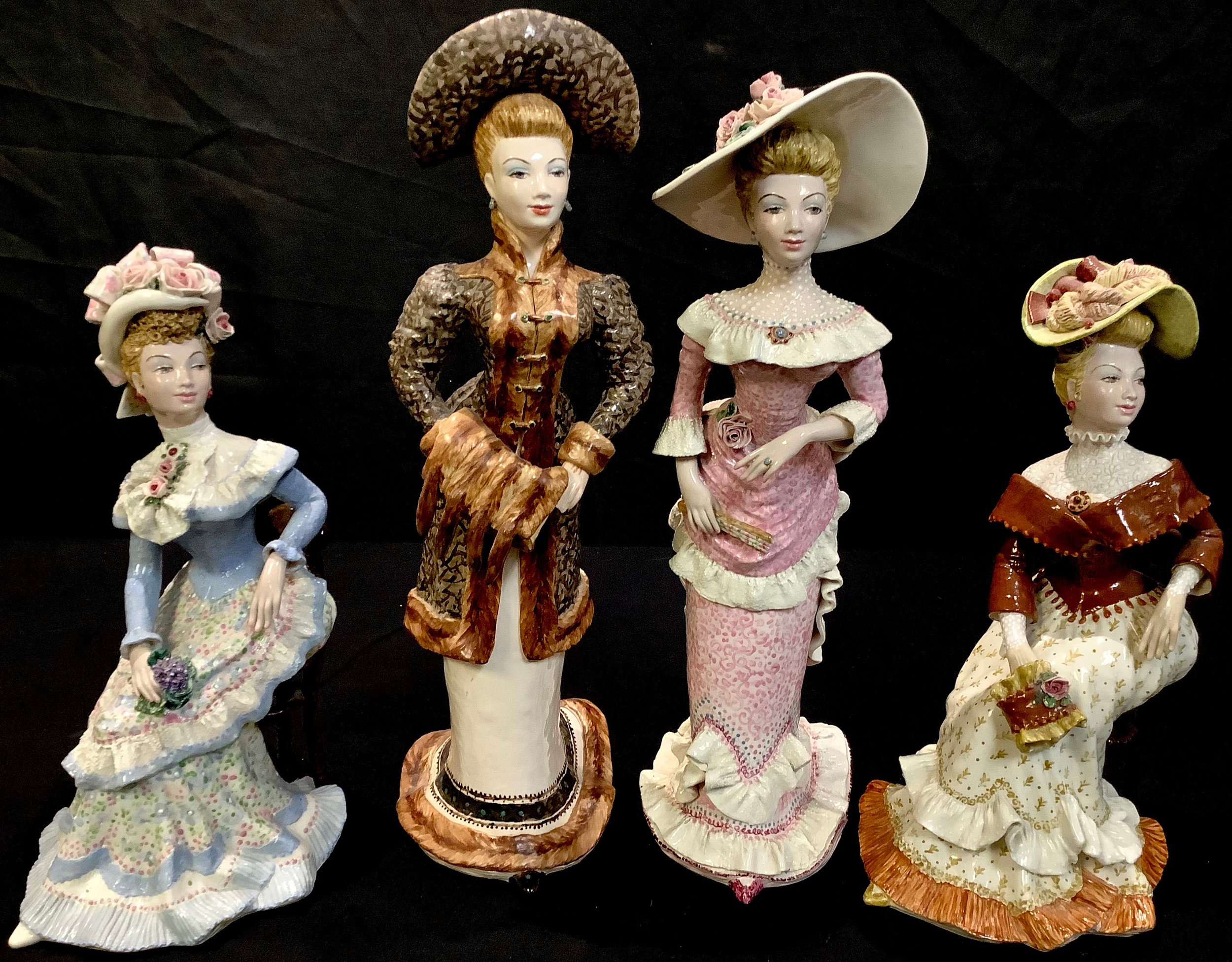 Studio Pottery - a set of four Kathleen Fisher figures, as Victorian ladies dressed in seasonal costume, each signed, c.1970