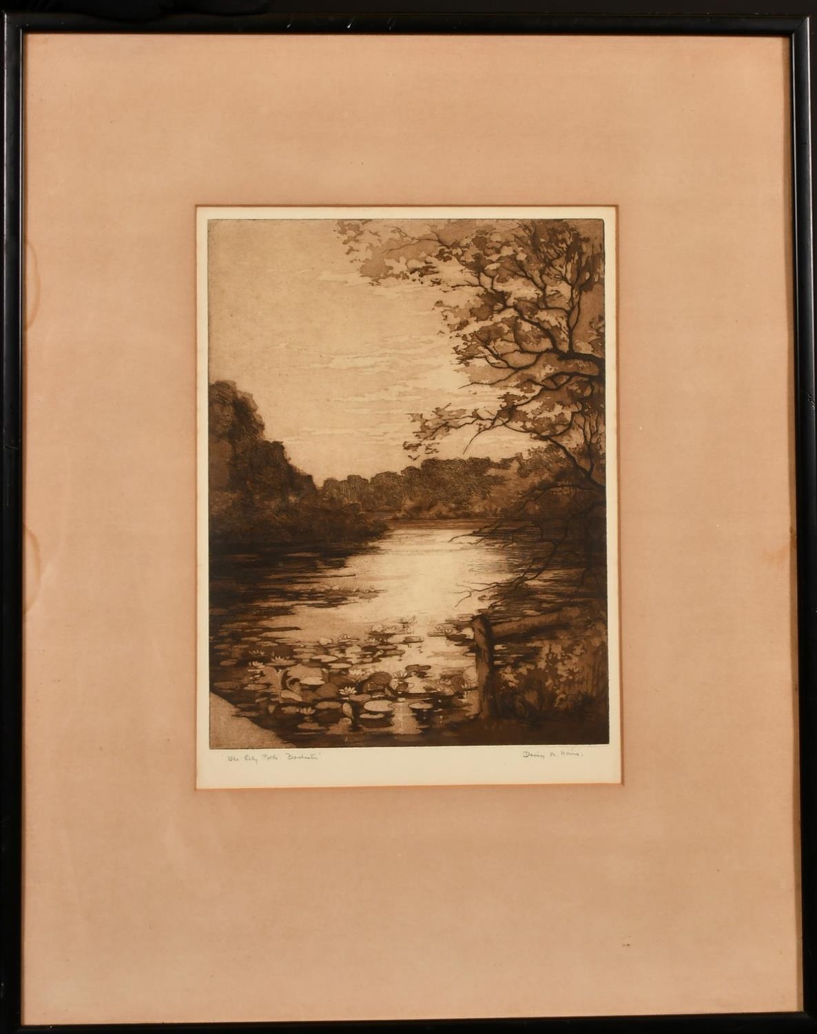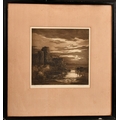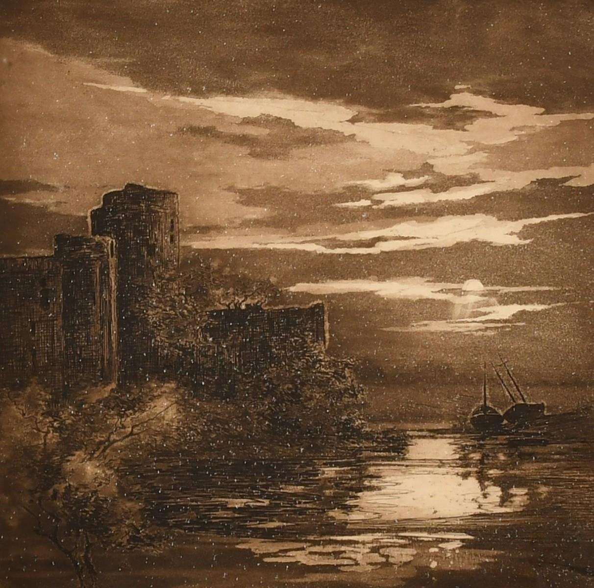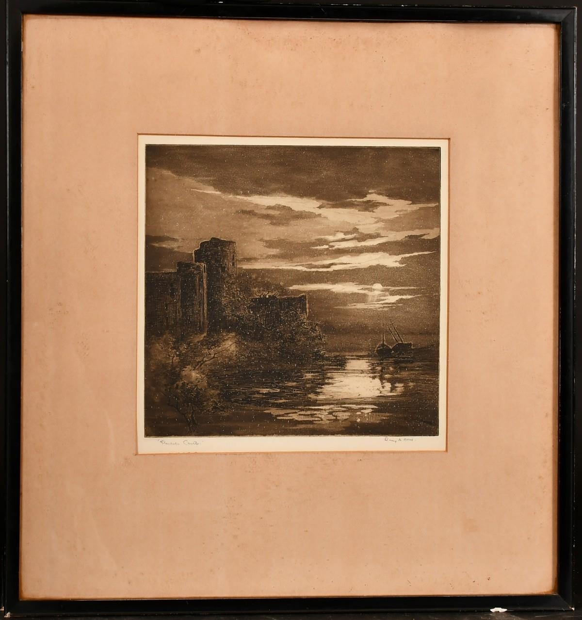 Daisy M Norrie (b.1899) British, Pembroke Castle and another of hilly ponds, etchings, signed and inscribed in pencil, one 13" x 9.25" the other 10.5" x 10.5",(2).